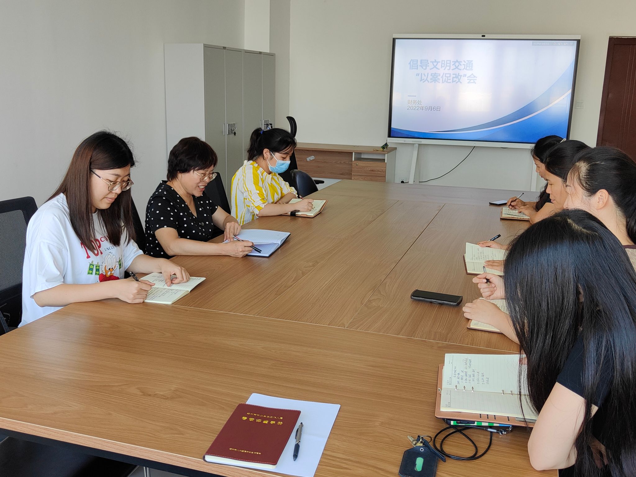9月5日下午,财务处组织召开倡导文明交通“以案促改”会议。会议由财务处处长刘新超同志主持,财务处全体人员参加会议。