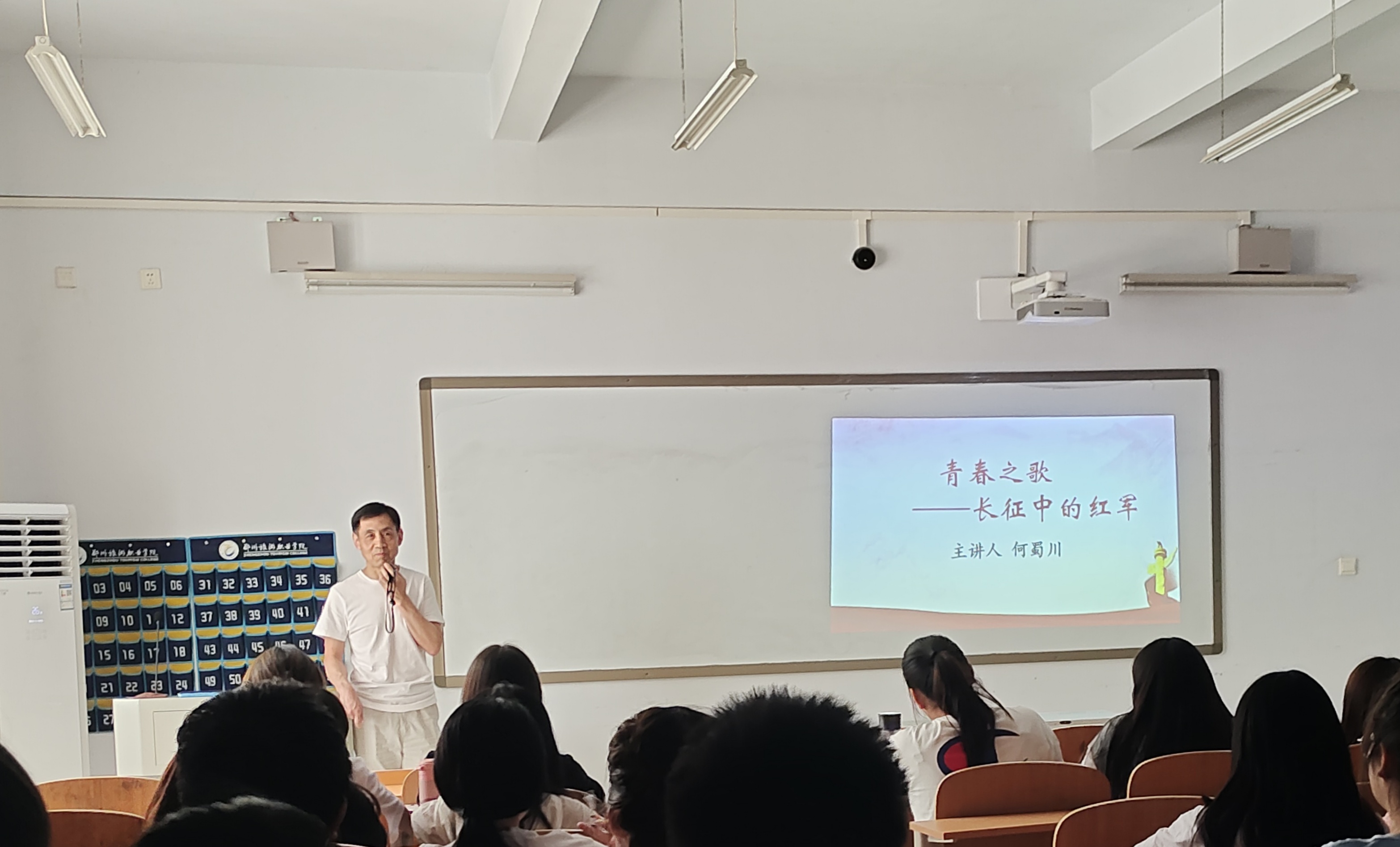 何蜀川书记以“青春之歌——长征中的红军”为题,讲述了长征期间革命前辈为实现中华民族伟大复兴而抛头颅、洒热血,为之牺牲的英勇事迹,他们以艰苦卓绝的斗争精神而书写青春之歌的光荣岁月。
