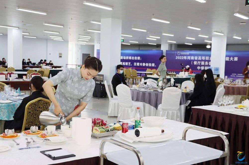 3月18日上午,2022年河南省高等职业教育技能大赛餐厅服务赛项在海洋之神590登录入口象湖校区正式开赛。来自全省31所院校68支代表队的136名选手在这里过招比拼,展示风采。