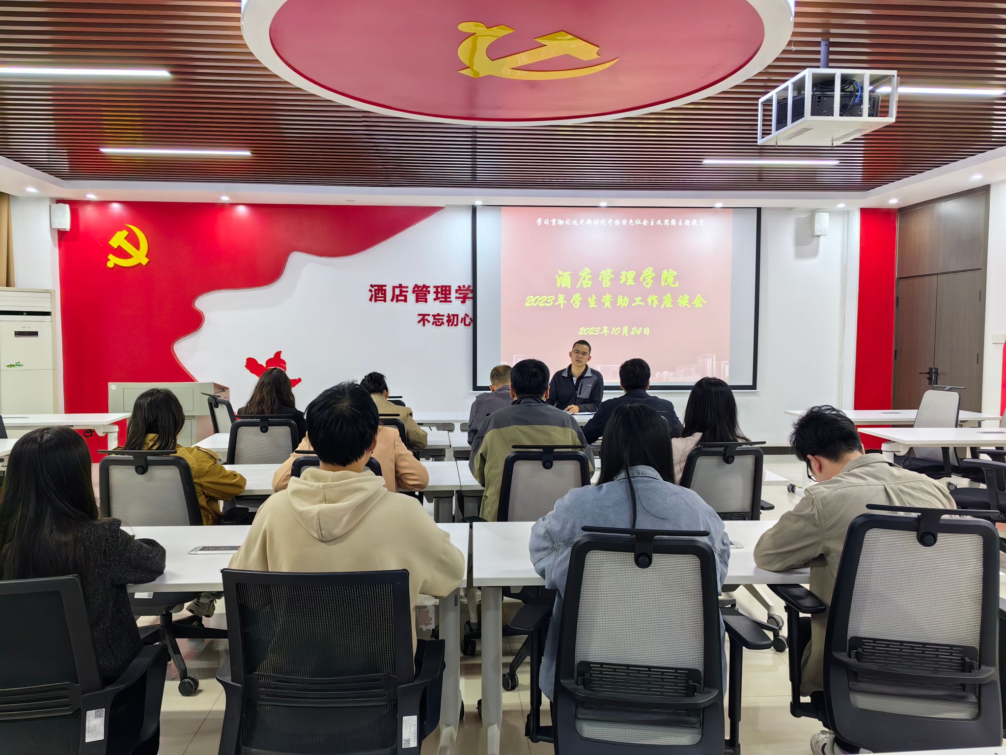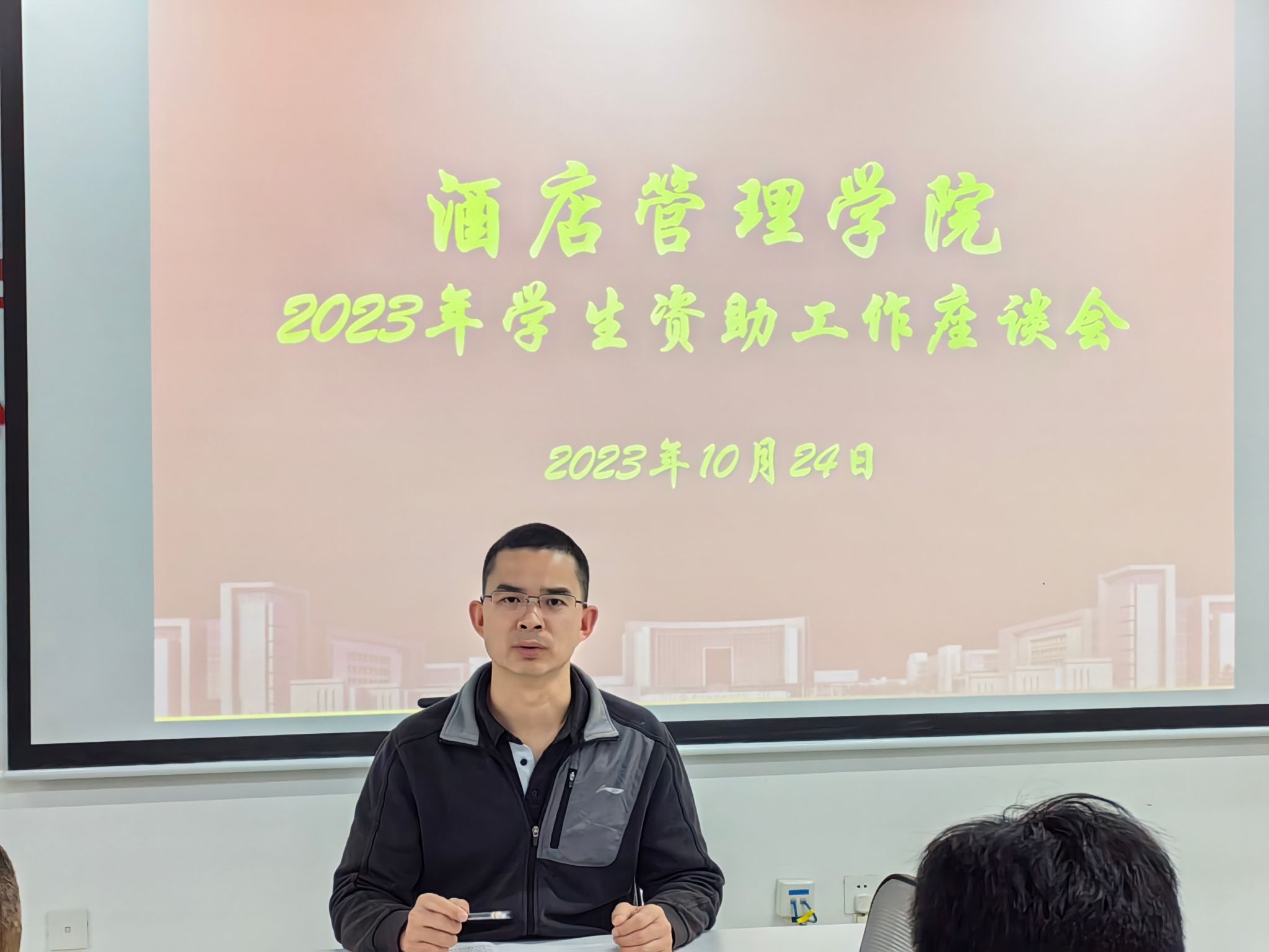 为进一步学习贯彻习近平新时代中国特色社会主义思想主题教育,深入了解学院学生资助工作开展情况,提高学生资助工作规范化水平,酒店管理学院于10月24日下午在党员活动室召开2023年学生资助工作座谈会,会议由酒店管理学院党总支书记陈海彬主持。