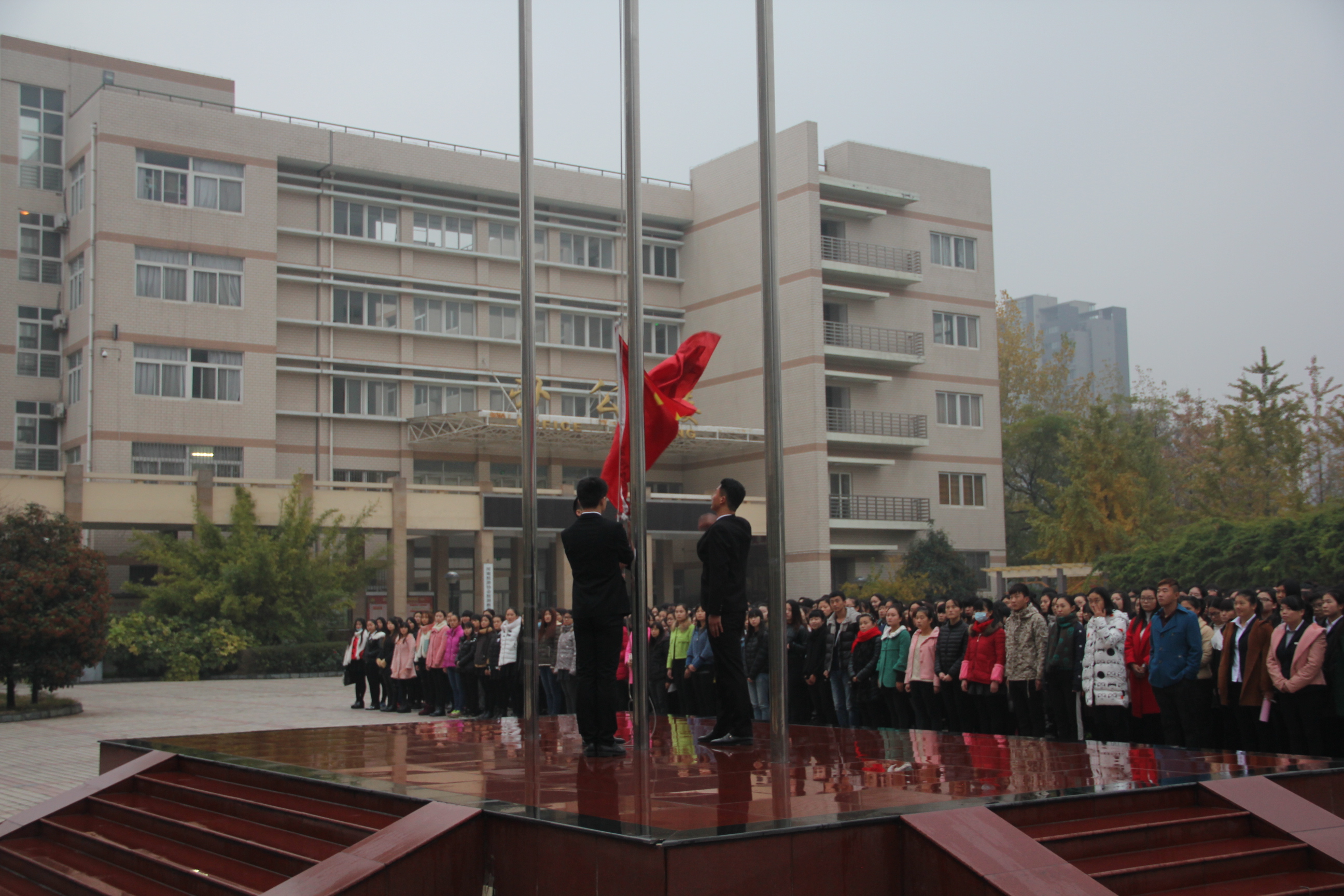 为进一步加强爱国主义教育,增强师生集体荣誉感和民族责任感,引导学生以更加饱满的精神状态践行科学发展观。2015年11月16日早上,酒店管理系于学院国旗台举行升旗仪式。酒店管理系党总支副书记陈海彬、团总支书记侯宁波、全体辅导员和学生共同参与。