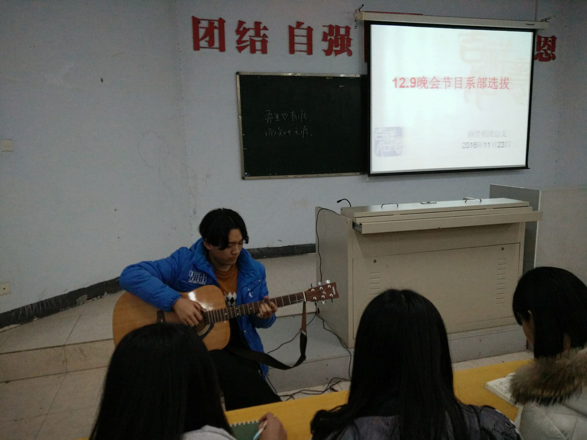 本次选拔为迎接12·9晚会选拔人才,同时也为广大学生提供一个展示风采的机会。大赛得到同学们的广泛关注和积极响应,各级同学踊跃参加比赛。大赛按照报名顺序进行表演,表演节目主要有歌曲、舞蹈、乐器、小品、话剧和诗歌朗诵等类型,优秀节目数不胜数。赢得了在场观众的热烈掌声,现场掌声雷动,经久不息。