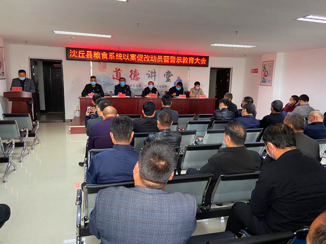 3月26日,在沈丘县粮食和物资储备局以案促改警示教育大会上,周营粮油购销公司党支部书记、经理王某军回顾自身违纪的心路历程,在大会现场现身说法(如上图)。这次以系统内干部违纪违法的典型案例开展现场警示教育,这使该县粮食系统参会人员感到震惊。
