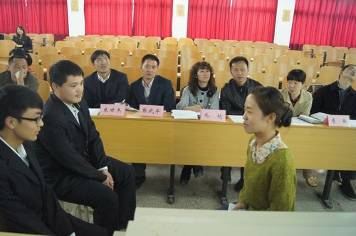 4月18日下午4:00,学生处在东教学楼二楼北阶梯教室进行了学院2013年辅导员职业技能决赛的面试工作。学生处处长毛艳、院团委书记朱宇、五个系的系总辅导员担任了本次竞赛决赛面试环节的评委。