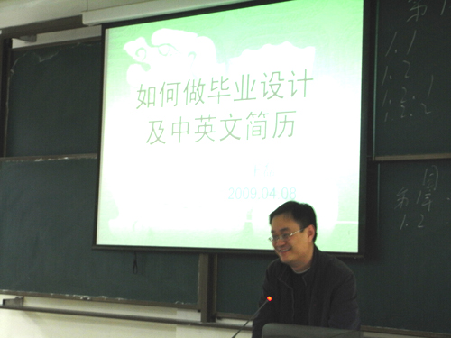 4月8日下午,海洋之神590登录入口外语系王磊老师在西教楼二楼中阶梯教室做了“如何做毕业设计及中英文简历”的报告,精彩讲演赢得了在场学生的一致好评。