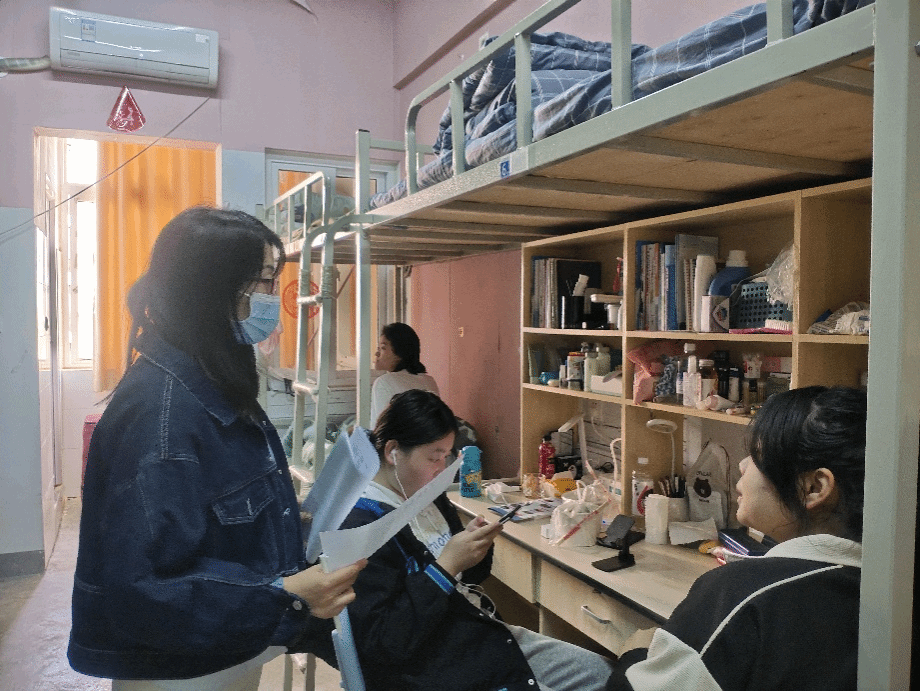 走访期间,学院老师、班助与同学们进行了亲切交流,详细了解同学们近期的日常生活、安全问题、心理问题、疫情防控等情况,并叮嘱同学们要严格遵守疫情防控期间学校的各项管理规定,按时参加学校组织的核酸检测,同时要健康饮食,积极加强身体锻炼,保持乐观向上的好心态,特别要注意增强安全意识,注意防盗防诈骗及寝室用电安全。