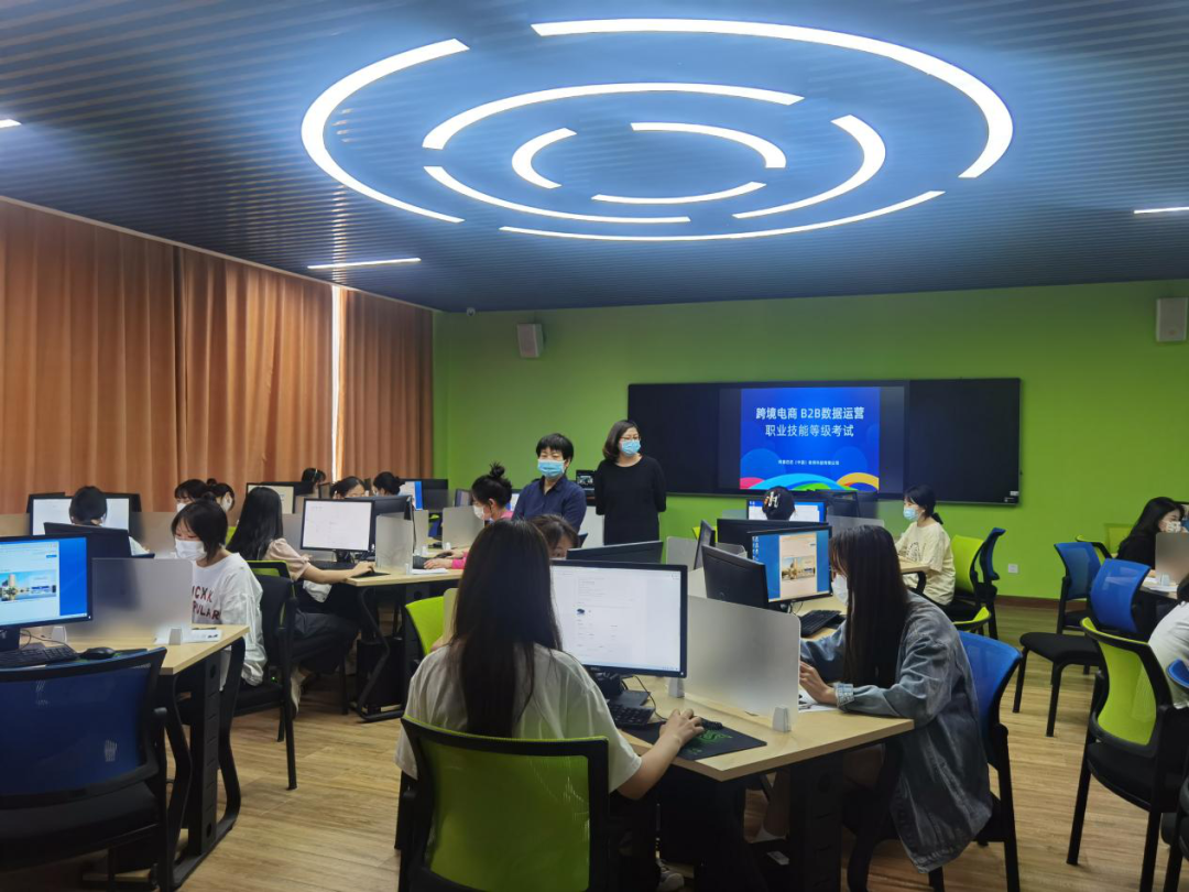 我院于2020年获批“1+X”跨境电商B2B数据运营职业技能等级证书(中级)考试试点以来,学院领导高度重视,商务英语教研室主任王萍认真筹备考培工作,动员遴选考生、安排考前培训,组织软硬件设备调试、模拟测试、考务人员培训等。本次等级证书考试采用机试方式,分为理论和实操两部分,考试严谨有序,系统平台稳定,服务保障到位。