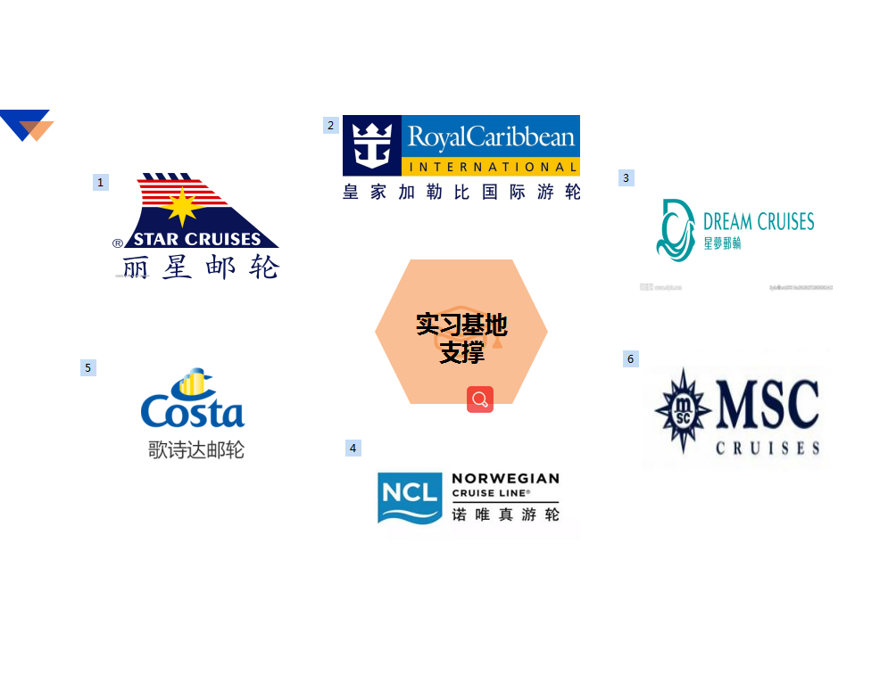 自2014年成立以来,我院国际邮轮乘务管理专业保持着良好的发展势头和就业方向。截止目前,我院学生国际邮轮就业遍布全球四大邮轮集团的国际加勒比国际邮轮、丽星邮轮、星梦游轮、诺唯真邮轮、歌诗达游轮、地中海游轮等众多邮轮品牌。2015年,我院加入中国高等院校邮轮人才培养联盟,2018年我院被授予皇家加勒比游轮有限公司人才培养基地。为进一步扩大专业规模,提升学生国际就业竞争力,我院于2019年建成占地516平米的国际邮轮实训中心一期工程,将于2020年完成二期建设。