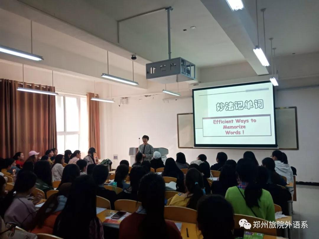 3月29日下午,由旅游外语系张贺玲教授主讲的题“妙法记单词”学楼211阶梯教室举行。张贺玲主任有着二十多年的教学经验,为学生介绍了各种巧记单词的方法,内容详实,条例清楚,学生们听得认真专注。