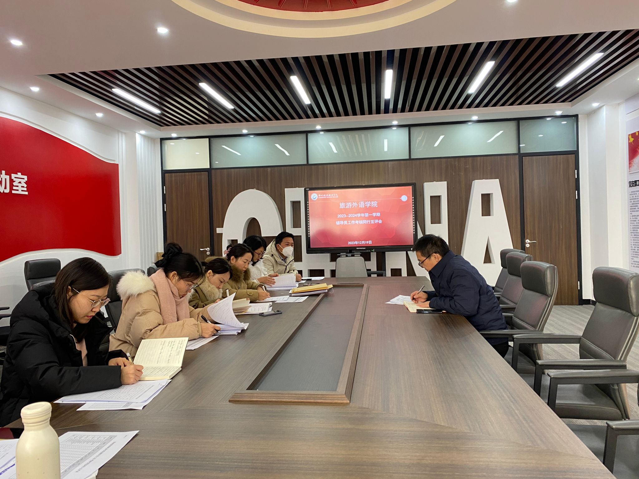 为切实提高学院辅导员政治素质和业务素质,激励辅导员认真履行岗位职责,充分调动工作的积极性,客观、公正地评价辅导员工作实绩,12月19日,旅游外语学院在清源楼党员活动室召开辅导员考核同行互评会,会议由旅游外语学院党总支书记肖磊主持,全体辅导员参会。