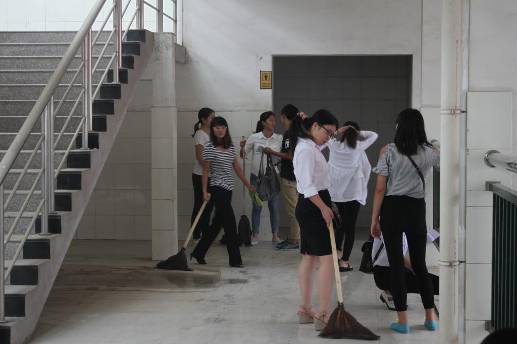2014年9月1日12时,旅游外语系13级入党积极分子针对西教学楼五楼进行了一次卫生大清扫。