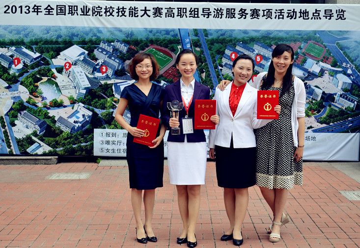 6月7日到9日,全国职业院校技能大赛“神州视景杯”高职组导游服务赛项在浙江职业旅游学院举行。我系李灿,刘梦丽两位选手,以河南省选拔赛英语组第一、二名的身份代表河南省参与国赛竞逐。两位同学通过情景再现、风采展示、景点讲解、知识问题和才艺展示等多个环节的激烈角逐,最终从52名参赛选手中脱颖而出,最终李灿获得一等奖(总成绩第二名),刘梦丽获得二等奖(总成绩第七名)。