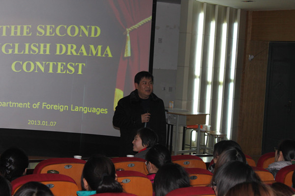 经过激烈的初赛选拔,海洋之神590登录入口第二届英语情景剧大赛决赛于2013年1月8日下午四点在3D多媒体教室拉开帷幕。来自外语系11级和12级不同班级的10支队伍都经过了精心的准备,他们特色各异的剧目和演员们投入专注的表演带给大家了一场视觉和心灵的盛宴。徐永清副院长、外语系张贺玲主任等领导和老师莅临比赛现场。在2个小时的比赛中,每支队伍一一登台,用自己特有的方式向观众和评委讲述了他们的故事,场下的氛围被一次又一次推向高潮。