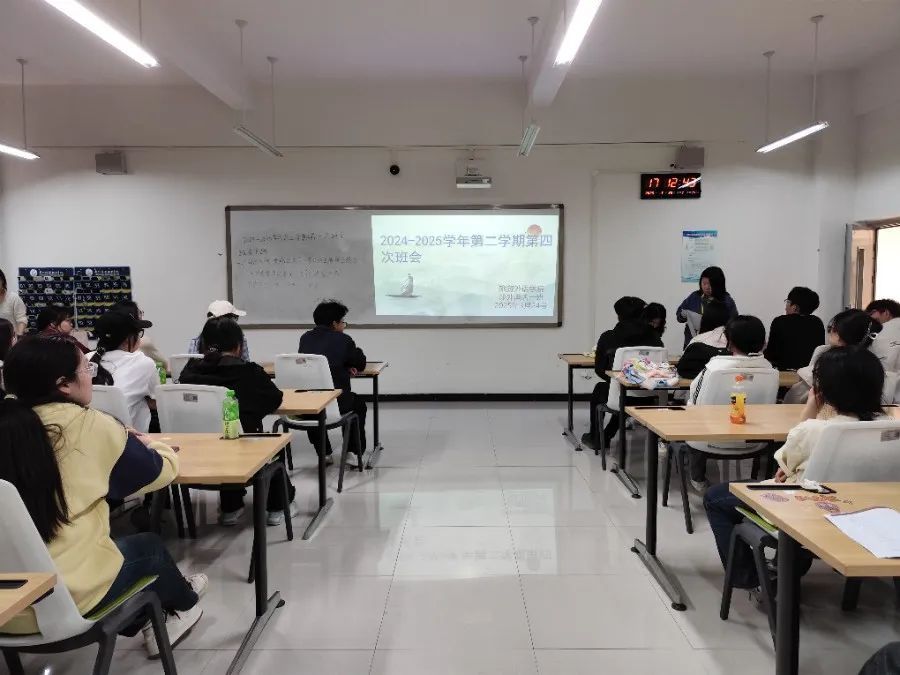 为了引导学生关注国家发展,提升同学们的文化自信和食品安全意识,旅游外语学院于3月24日-3月25日召开了2024-2025学年第二学期第四次主题班会。