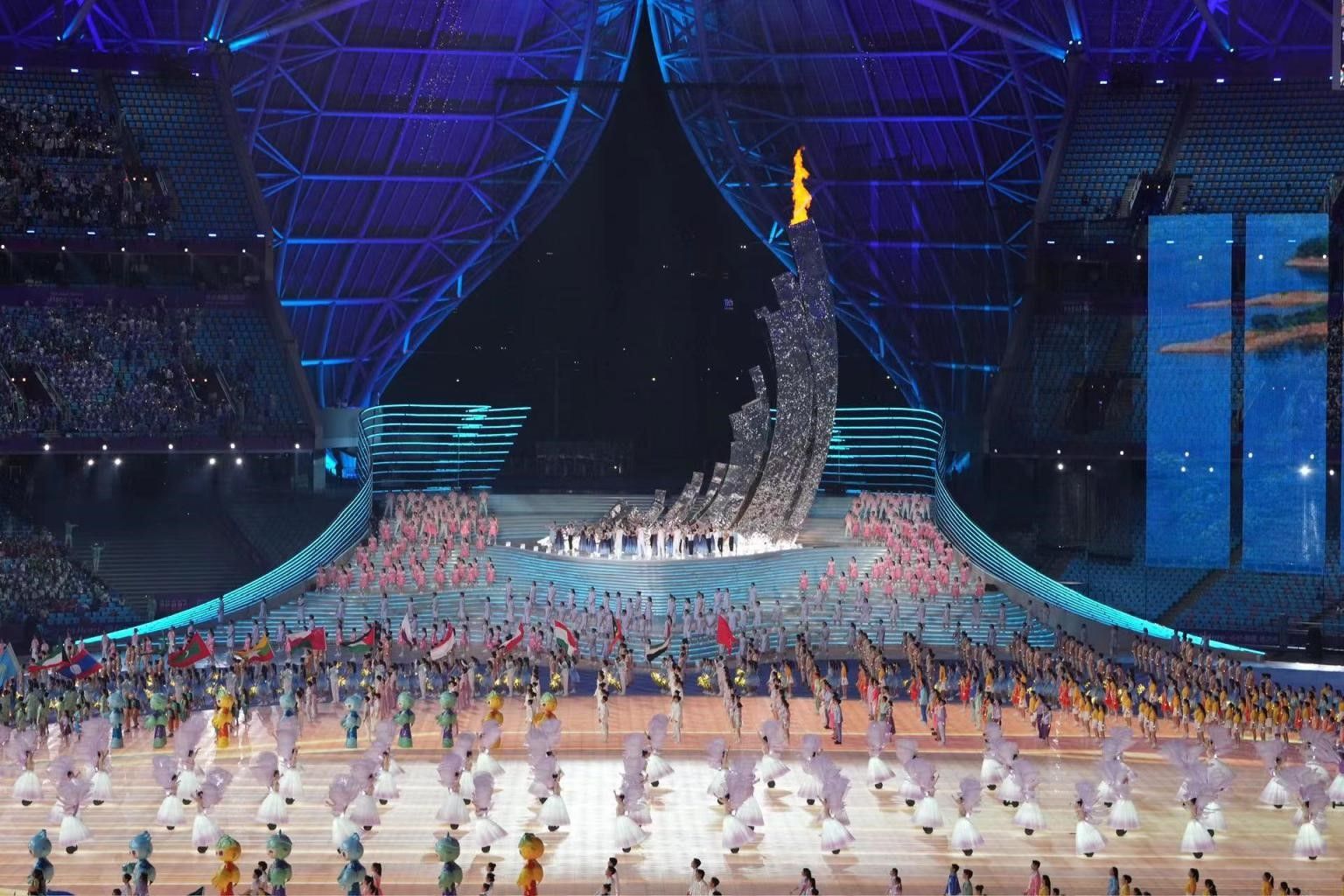 《习近平新时代中国特色社会主义思想概论》教师武优:亚运会不仅是竞技体育的盛宴,也是文化交流的平台。网幕之上,亚洲45个国家及地区的地标性建筑共同构成各美其美、美美与共的亚洲画卷。飘散而来的仿真桂花瓣及香芬让全场运动员及观众如同身临东道主杭州的秋日盛景之中,有宾至如归之感。亚运史上首个数字点火仪式,超过1亿名“数字火炬手”的金色数字人手持火炬,将现实世界拓展至数字世界,数字技术助力亚运精神薪火相传,共同点燃体育之梦、幸福之梦、亚洲之梦。加油,所有亚运健儿!加油,中国队!