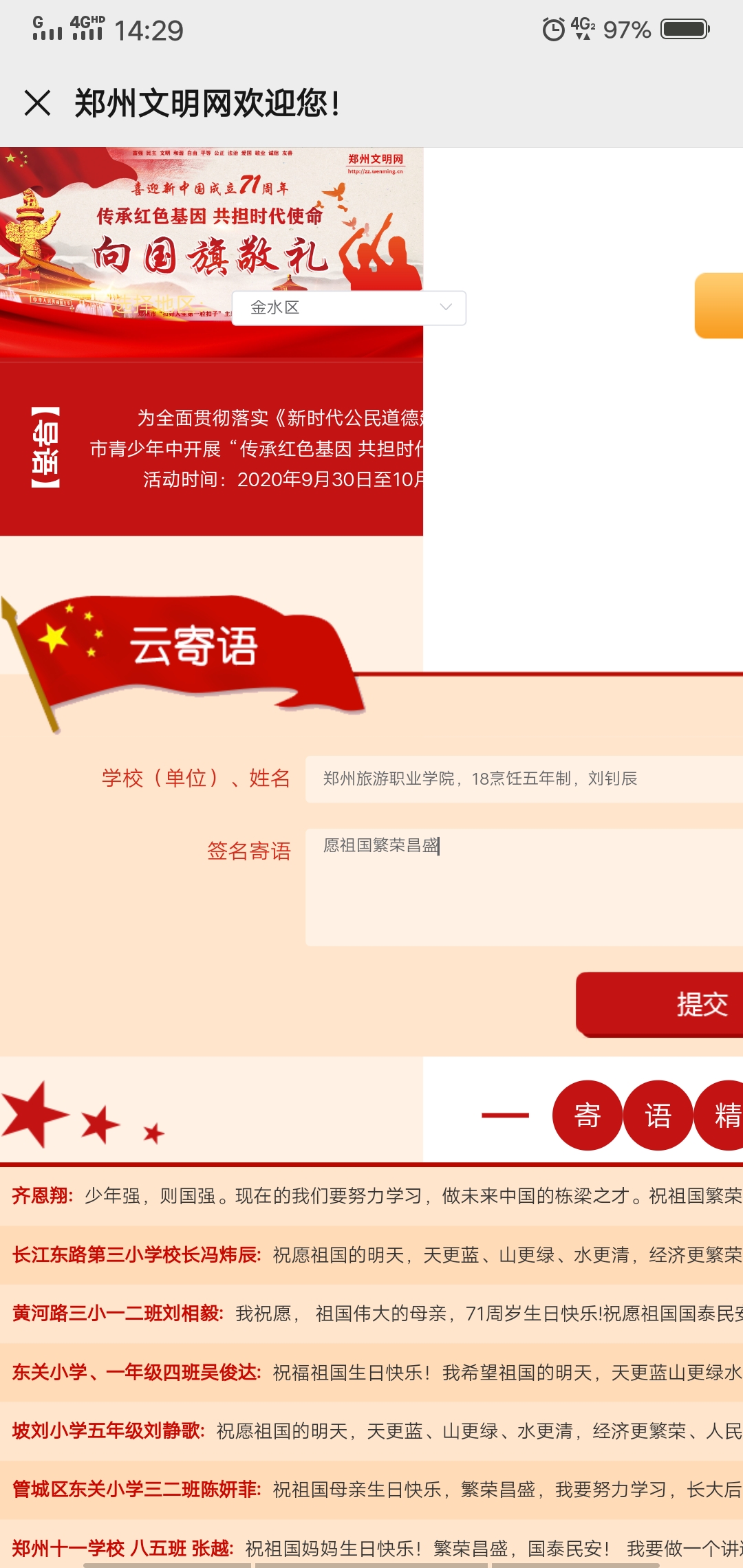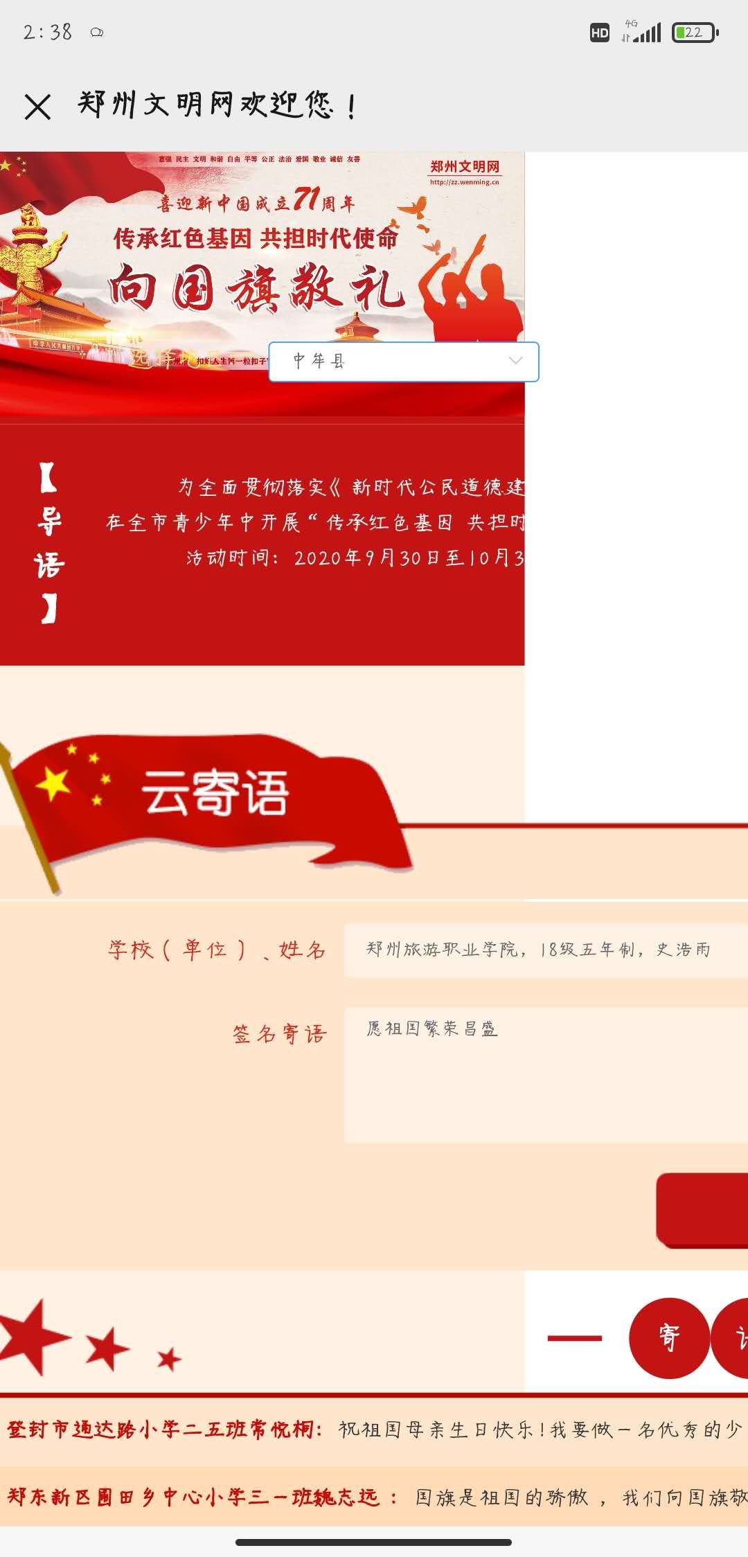 回顾历史,我们心潮澎湃,展望未来,我们豪情满怀。正值祖国71周年庆典,为大力弘扬爱国主义精神,增强我院学生的民族自尊心、自豪感,我院特在国庆期间举办了一系列爱国主义教育活动。