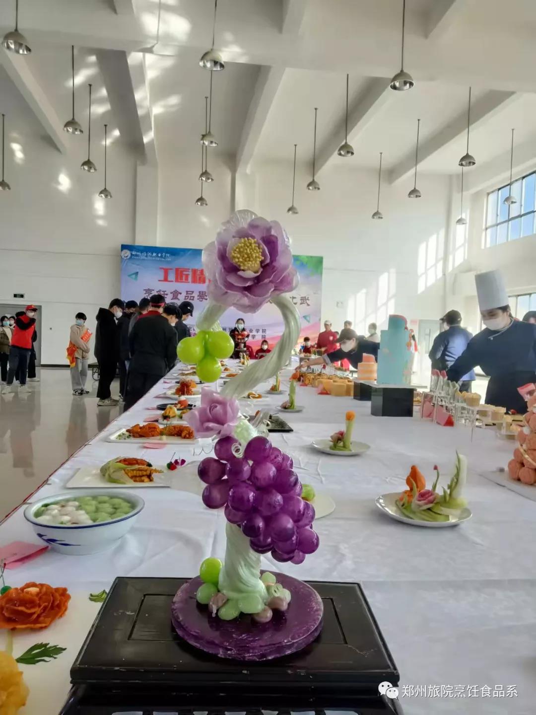 大赛期间,我院王风雷,韩小院,白晓州,等专业教师组成的评委小组分别在各自区域进行评判,各学院领导老师及学生也有序地在现场观看展示。本次大赛的成功举办,不仅展现了烹饪食品学院的专业特色与技能风采,激发了广大学生的学习兴趣,与此同时增强了学生的专业自信,为下一阶段的教学工作的顺利开展奠定了坚实基础。烹饪食品学院在今后的工作中将乘风破浪,锐意进取,加快专业化建设,提升专业水平,谱写高质量发展的新篇章。