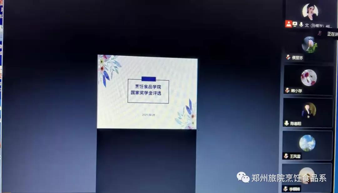 根据《河南省学生资助管理中心关于做好2021年高校学生国家奖助学金评审发放工作的通知》,为切实保证国家对学生的各项奖励措施真正落实到符合条件的学生身上,确保国家奖学金工作的“公开、公平、公正”,烹饪食品学院于2021年9月28日召开国家奖学金学院线上评审会议。