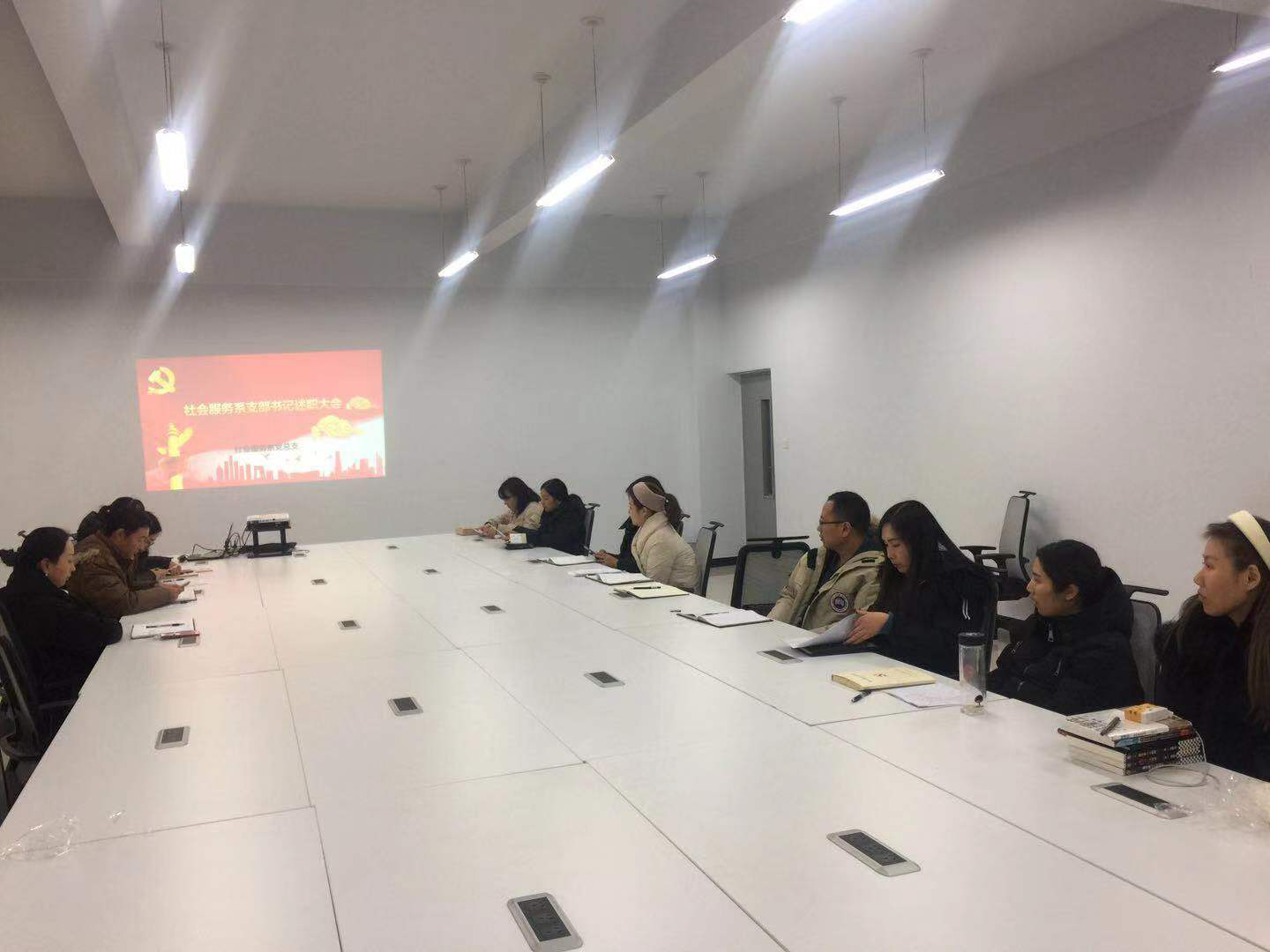 2019年12月24日下午,海洋之神590登录入口社会服务系党支部在1号楼208室召开2019年社会服务系支部书记述职大会。海洋之神590登录入口社会服务系党总支书记刘兆坤、学工支部书记段会利、教工支部书记魏俊巧、和社会服务系全体党员参加,会议由社会服务系党总支书记刘兆坤主持。