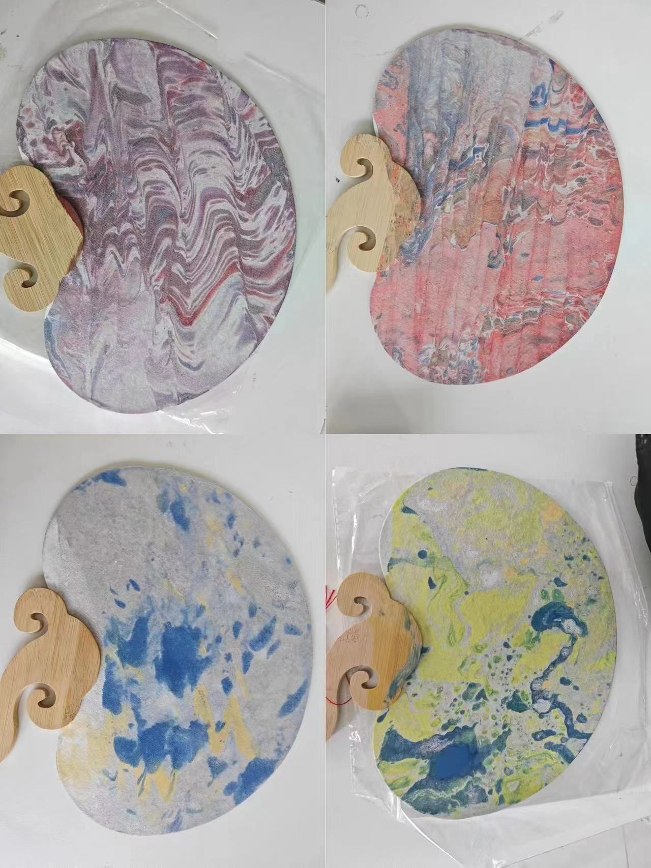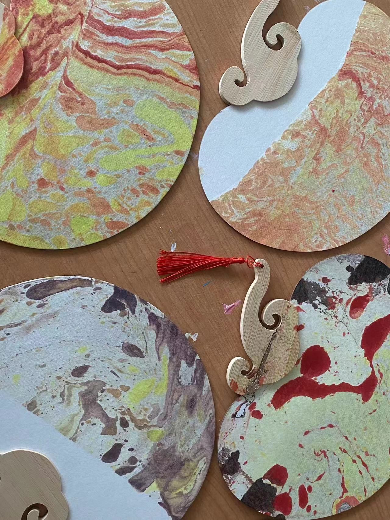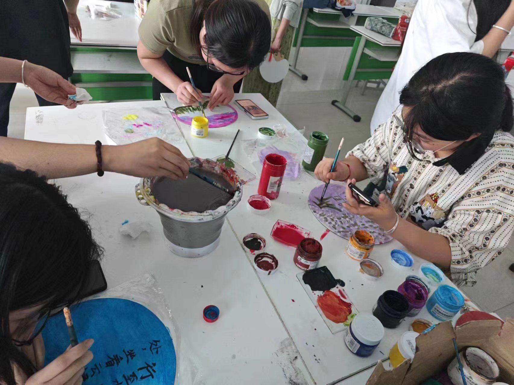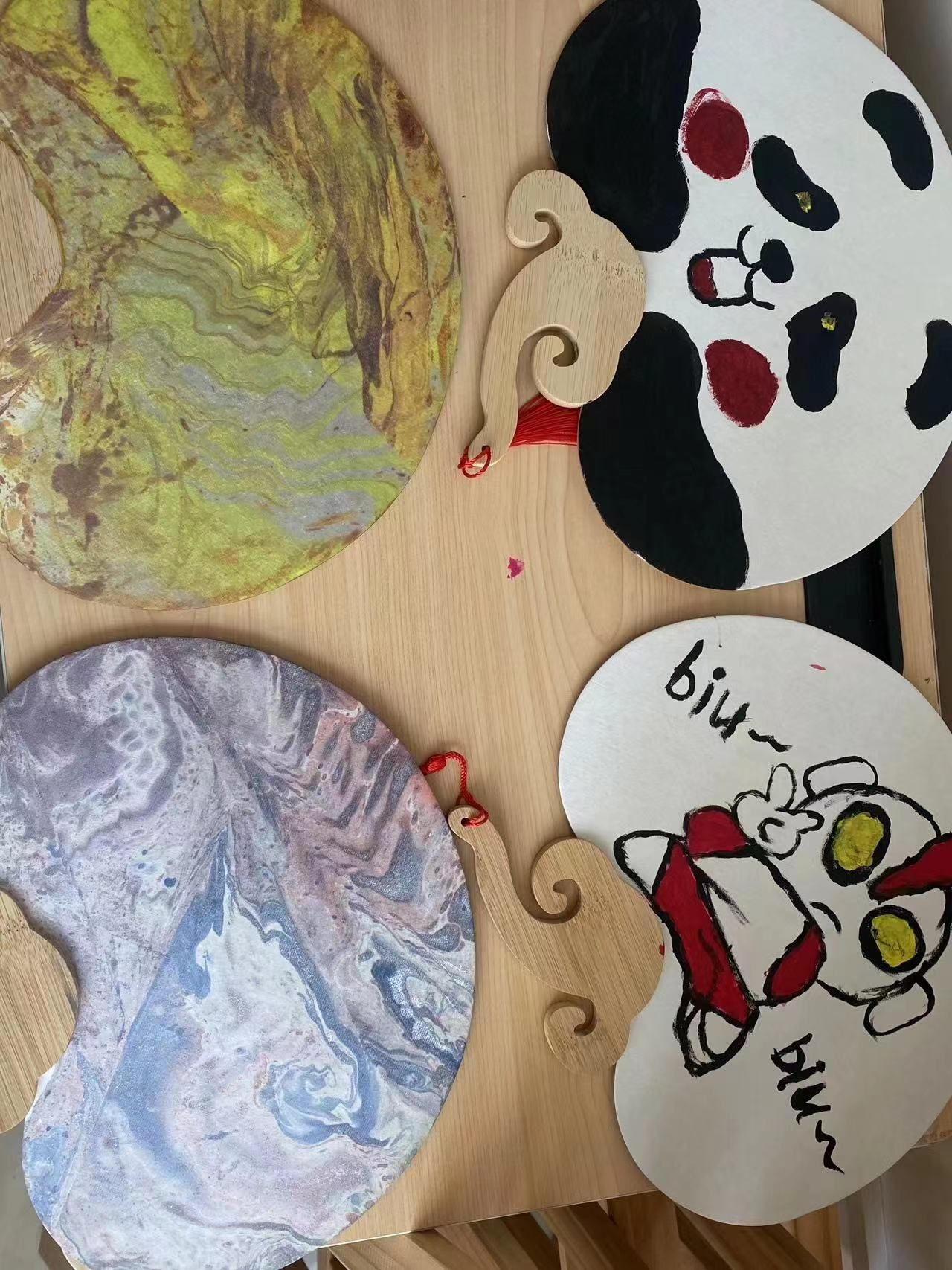 漆扇组的同学,在负责人的帮助下进行选漆、调漆、试色……充分发挥自己的想象力和创造力,制作出了一把把独属于自己的创意漆扇,切身感受了一次色彩流动的美学,并纷纷折服于漆扇文化的魅力。挥洒创意,以漆为笔、以水为墨,一进一出间,东方绝美色彩在扇上翩翩起舞。绘画组的同学在空白的扇面上,尽情勾勒、描绘、涂色……绘画出一个又一个笔触细腻,色彩鲜艳的作品,充分发挥了自己的想象力和创造力,感受到艺术的乐趣。