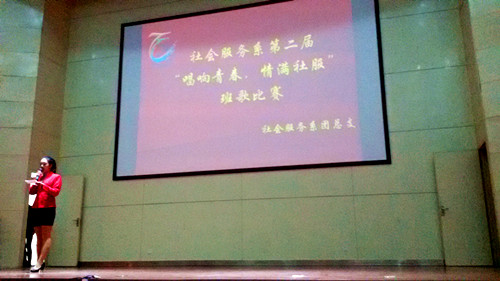 为丰富校园文化生活,提升班级形象,培养学生的集体荣誉感,增强班级凝聚力和向心力,2014年11月30日晚19时,社会服务系在西报告厅举办了“唱响青春 情满社服”班歌大赛。各班级学生以合唱的形式抒发壮志豪情,以激情澎湃的歌声展现青春风采。