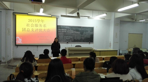 2015年1月4日下午6点在东教学楼三楼北阶开展了社会服务系团总支评优大会。此次大会为竞选者们搭建了一个舞台,他们在这里展示了自己的才华,同时也展示了自己的领导和管理能力。