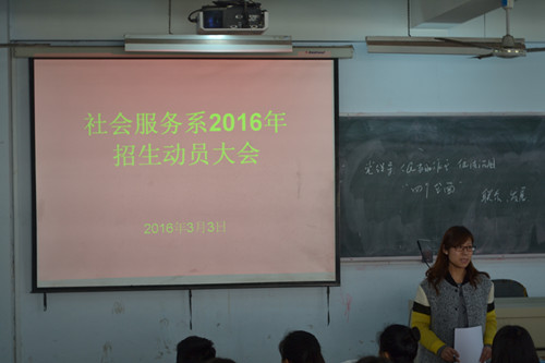 会上定琦主任对以往年度的招生工作做了详细介绍,并结合目前招生形势,梳理了我院招生项目的特点和优势,对2016春季单招工作提出了“全员招生、心系招生、创新招生、专业招生、服务招生”的总体要求。要求我系师生以招生工作为中心,精诚团结,协作共进,并希望党员干部充分发挥先锋模范作用,敢于担当,敢于争先,把学院各项工作做得更好、更扎实。