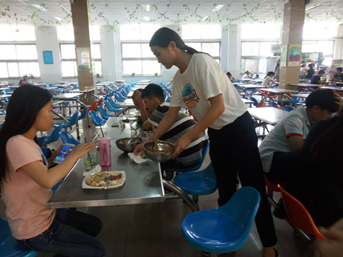 2016年6月4日为一年一度的端午节,社会服务系团总支青志部组织志愿者们在学校食堂二楼和三楼开展了一次关于端午送温暖——在餐厅做义务劳动的青年志愿者活动。