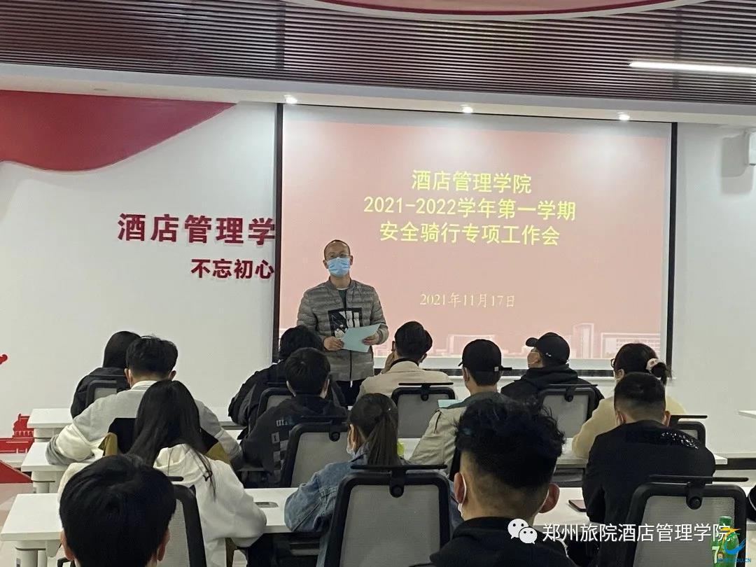 为加强校园交通秩序管理,保障校园道路畅通和师生生命财产安全,努力努构建平安有序、文明和谐的校园,酒店管理学院孙孟珂老师于11月17日下午召开2021—2022学年第一学期安全骑行专项工作会。
