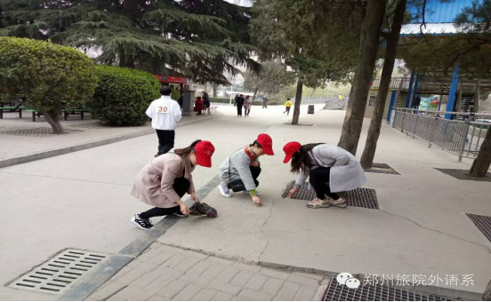 旅游外语系的志愿者们携带垃圾袋,垃圾斗等工具,分成两队对人民公园内的运动场所和娱乐场所进行了清扫,细心的志愿者把散落在草丛中的小小烟头用手捡出来。尽管春寒料峭,但旅游外语系的志愿者们却个个满头大汗。
