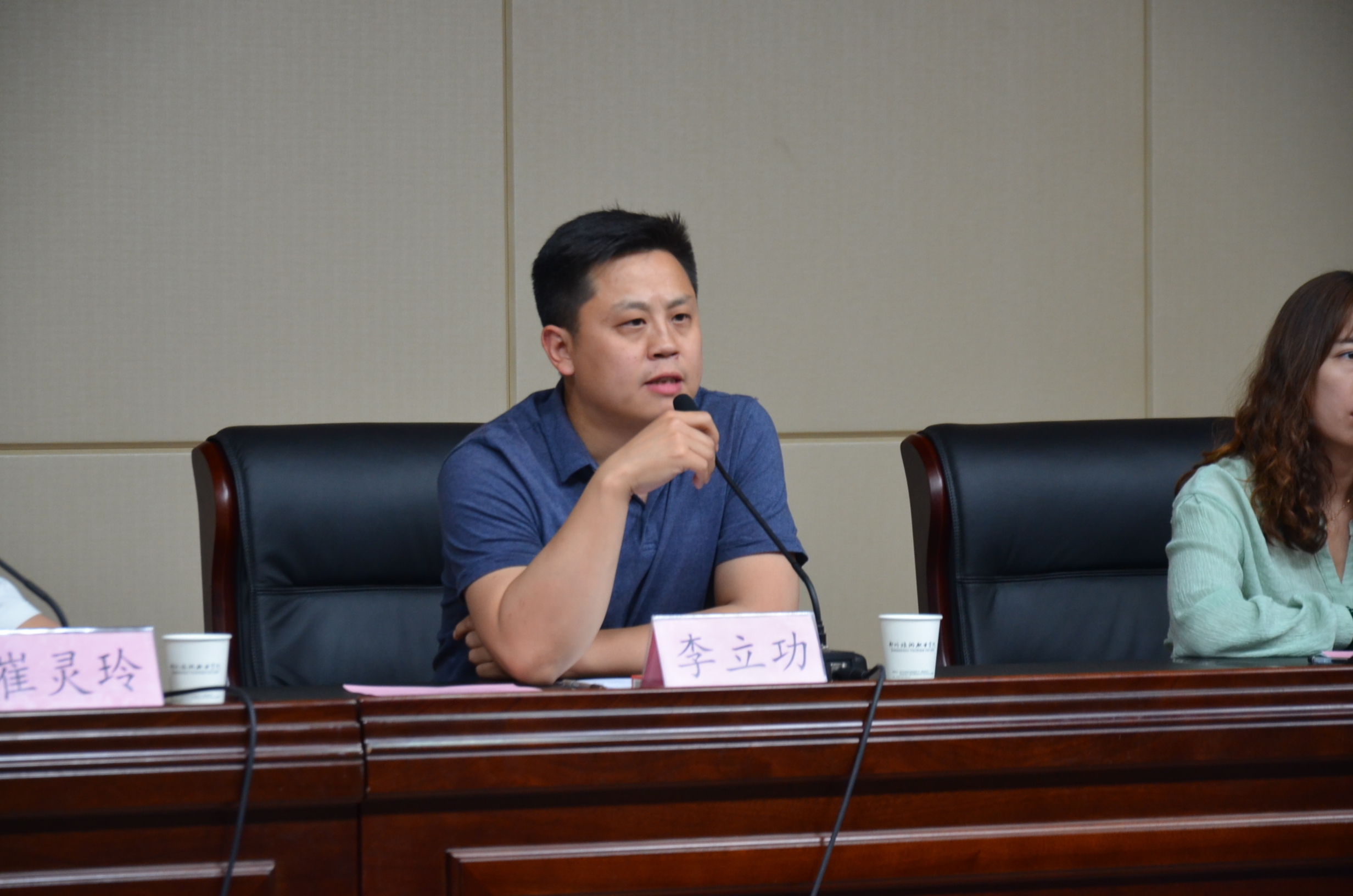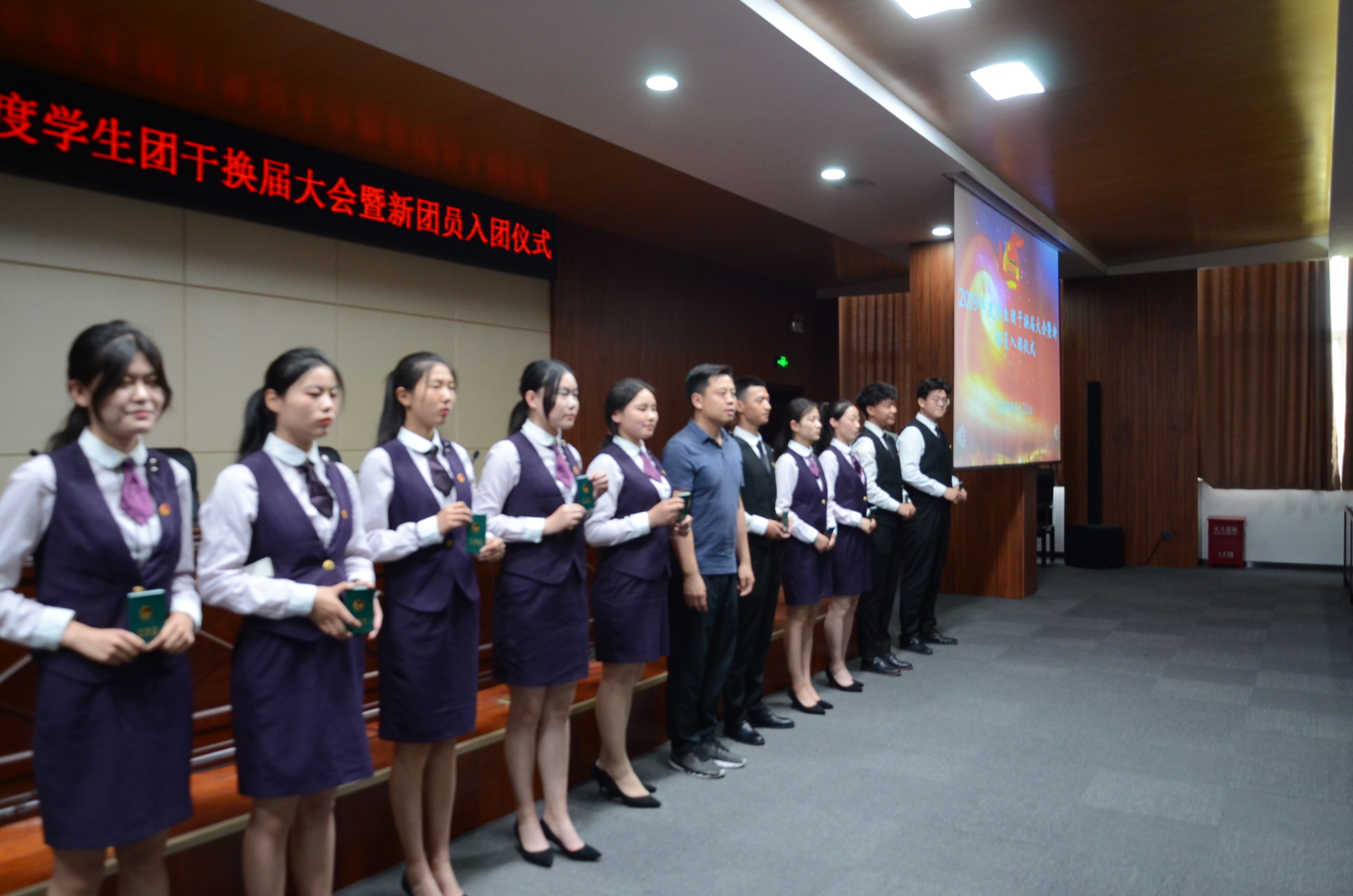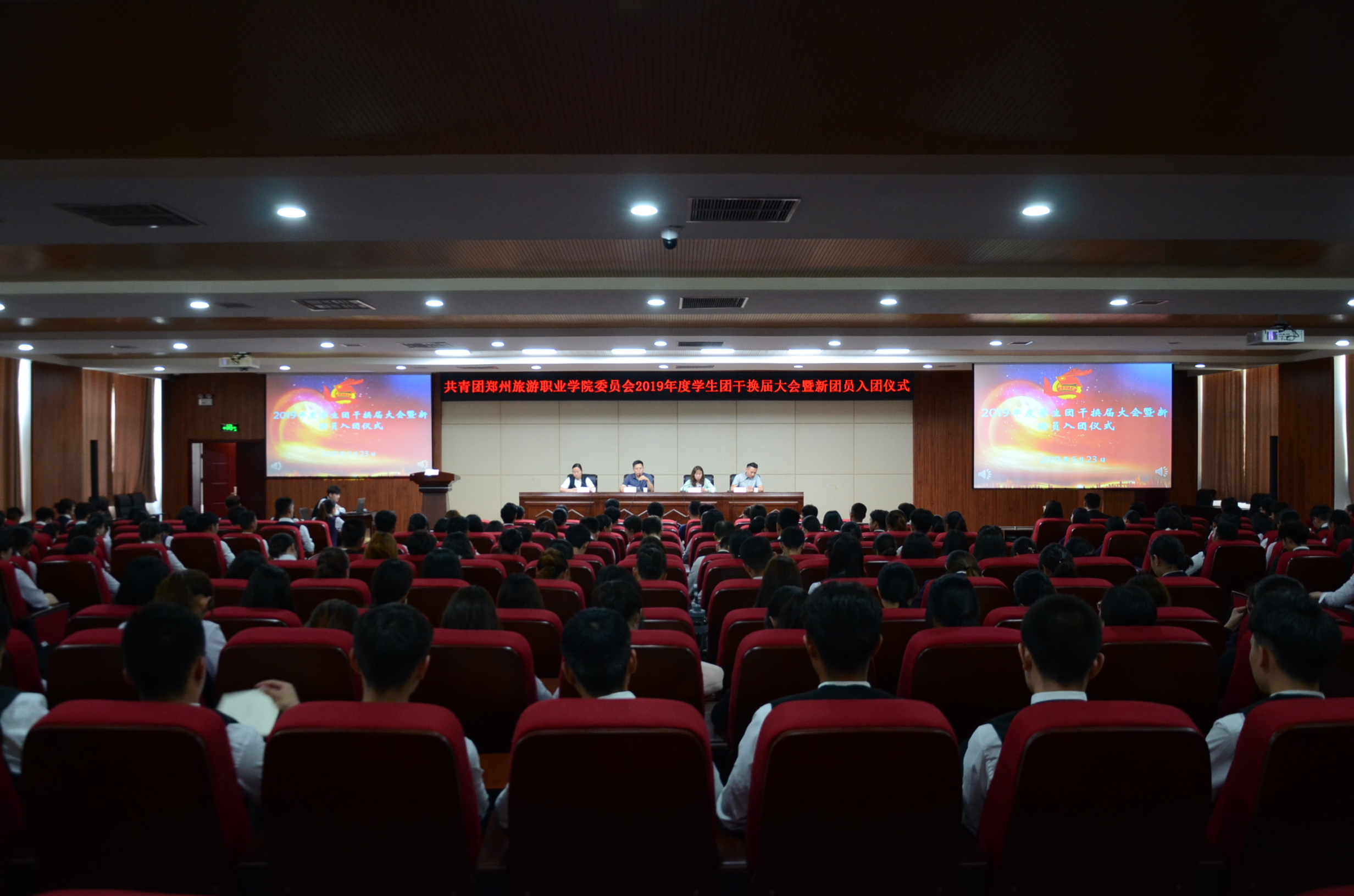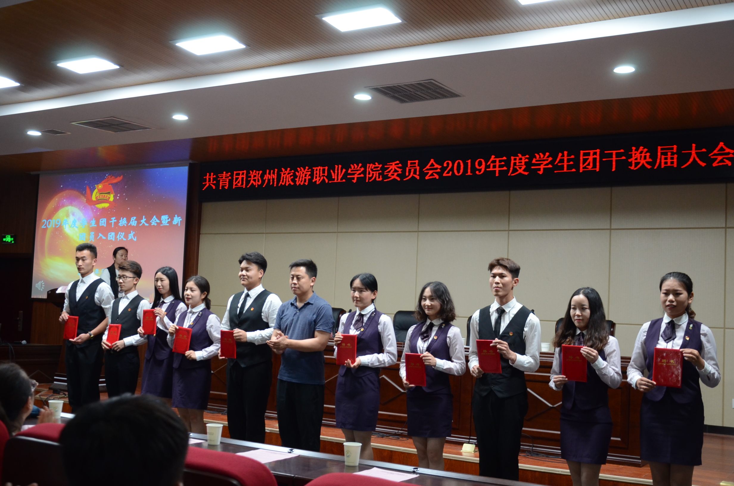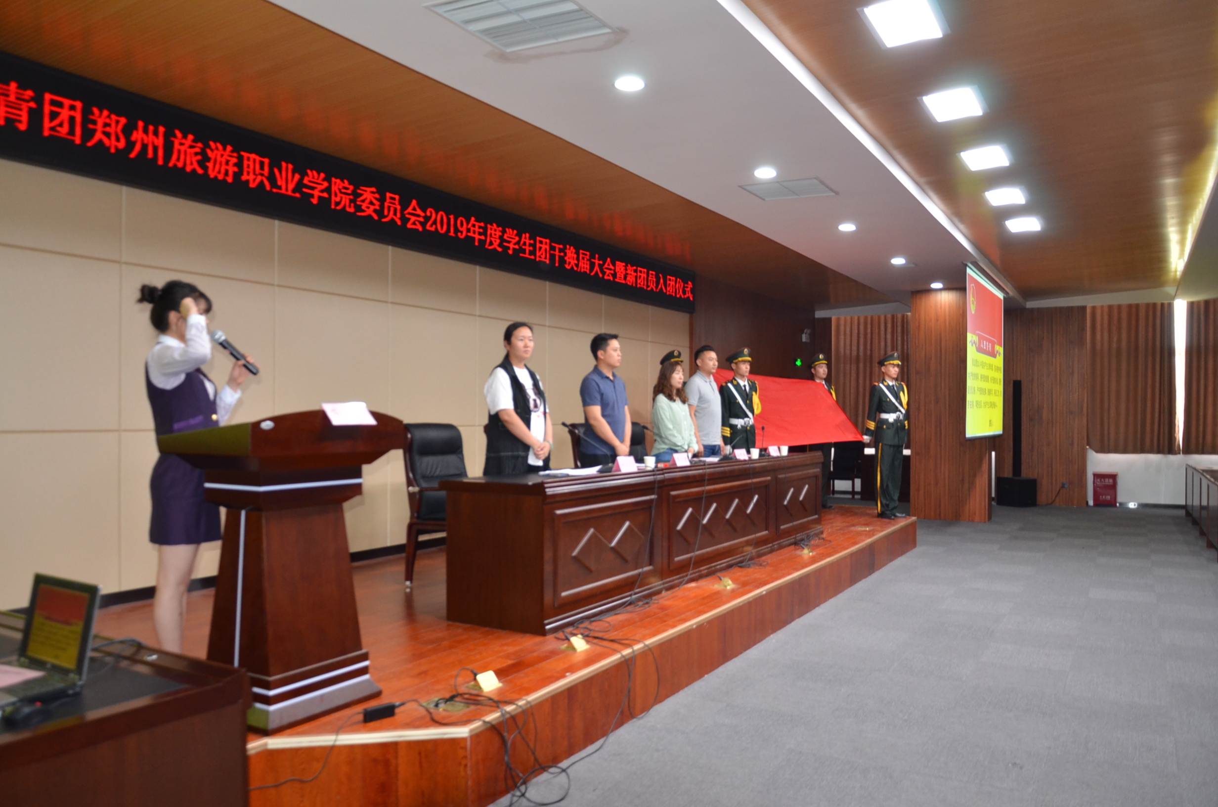 2019年5月23日中午12点30分,我院于象湖校区综合楼C座四楼会议室隆重举行2019年学生团干换届大会暨新团员入团宣誓仪式,出席本次活动的老师有团委书记李立功老师,团委社团部部长董明珠老师,团委宣传部部长刘嘉佳老师及各系团总支书记,会议由团委组织部部长崔灵玲老师主持。