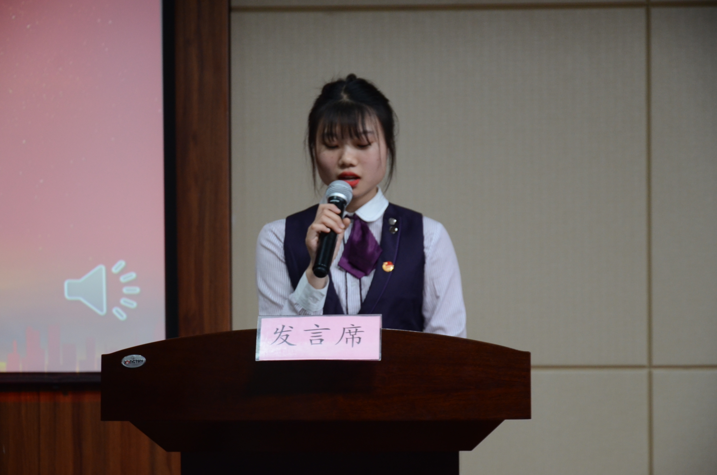 观看视频后由2017级团干代表张静做离任发言,