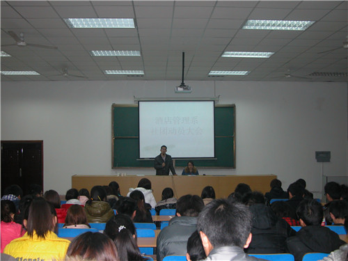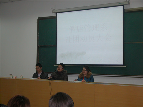 为促进校园文化建设,进一步完善我系各社团的管理制度。2月21日晚7点,酒店管理系社员大会在信息中心一楼召开。莅临本次大会的领导老师有:酒管系党支部副书记郭防、酒管系团总支书记陈海彬老师。此次大会的主持人由李舒老师担任。酒管系各社社长及社员全都到场参加此次大会,无一缺席。