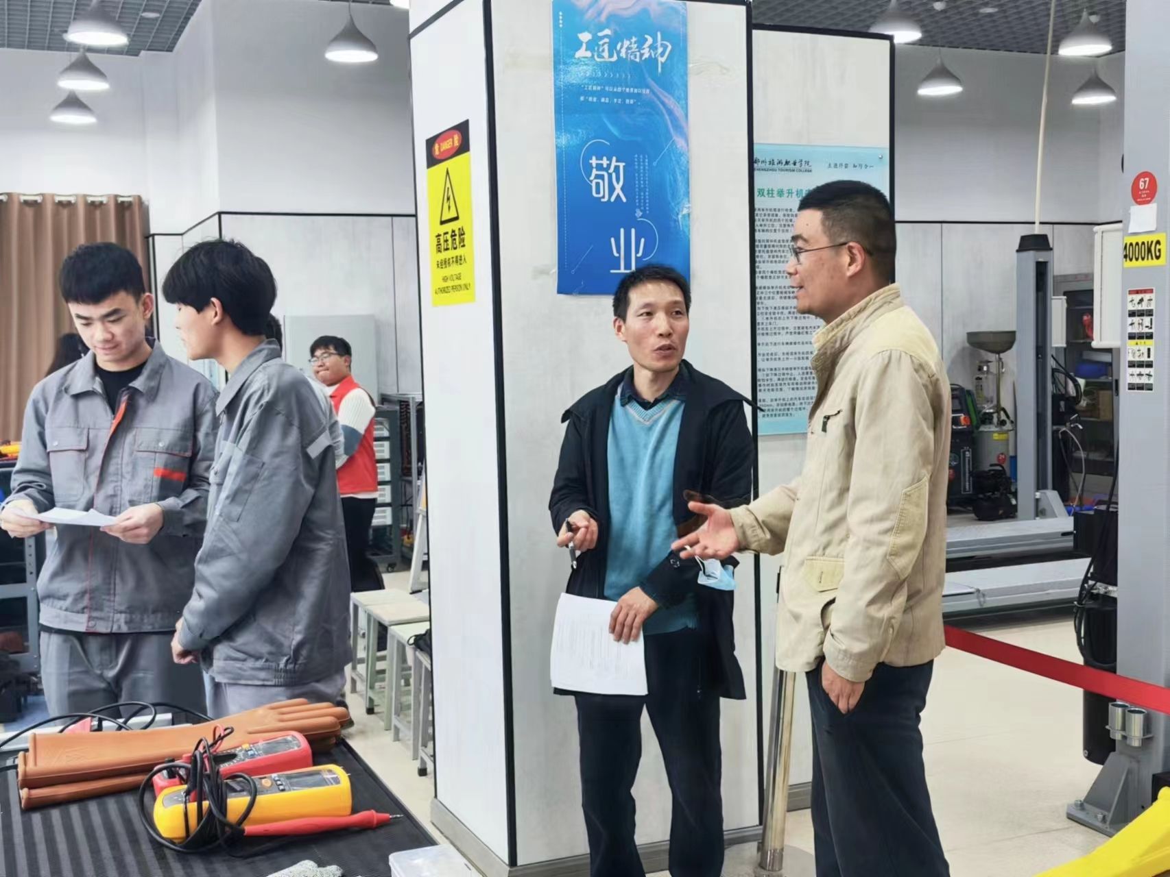 2023年11月8日,由海洋之神590登录入口主办、机电工程学院承办的第三届汽车故障检修大赛决赛在新能源汽车智能实训中心顺利举行。来自机电工程学院新能源汽车技术专业的6支队伍同台竞技,相互切磋,展现了自己的专业技术、团队协作能力及工匠精神。期间教务处处长胡华、副处长张泽建以及机电工程学院党总支书记张培彦、院长张之红等领导莅临现场指导工作。