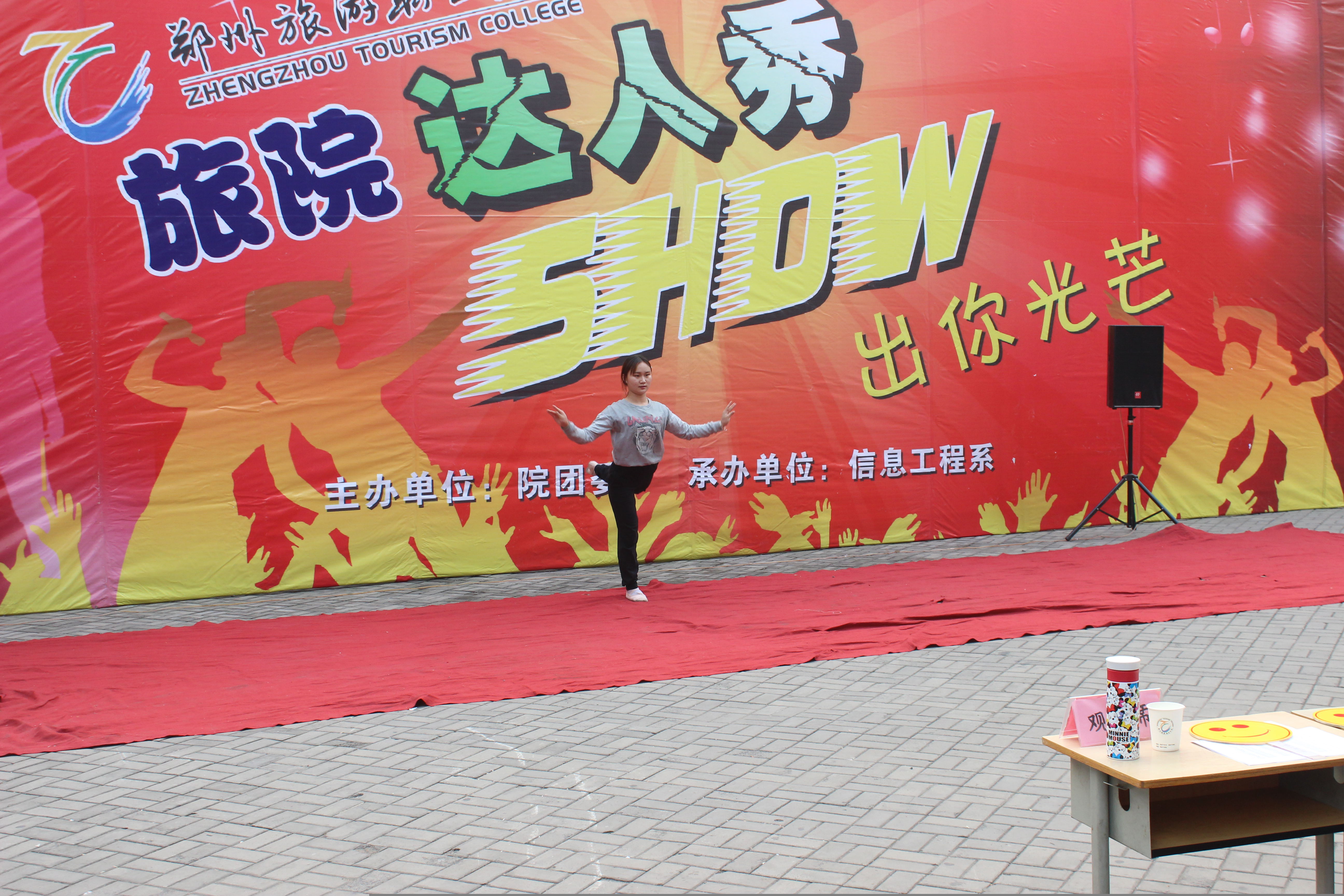 2016年10月19日下午4时,由郑州旅游学院院团委主办信息工程系承办的“旅院达人秀”活动,第三场海选在西报告厅前举行,莅临本次比赛的领导有院团委组织部部长崔灵玲,院团委副书记岳正阳,评委老师由艺术体育部钟姝老师,方颖老师,烹饪食品系孙文文老师担任评委。