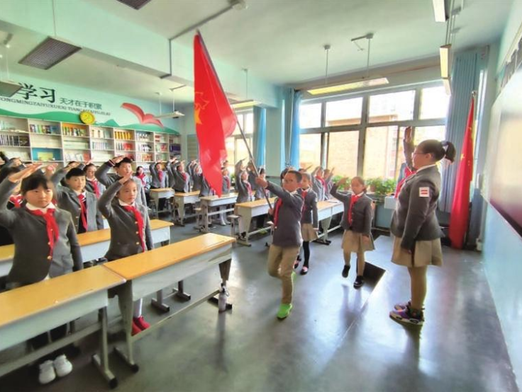 少先队员通过朗诵《谁是最可爱的人》、快板表演《英雄赞》、歌唱《我和我的祖国》表达了对革命先辈的缅怀之情和对祖国的无比热爱,学生代表为闫青大校戴上了光荣的红领巾、敬队礼,祝愿他健康长寿。“孩子是祖国的未来,是民族的希望,看到孩子们健康茁壮地成长,内心无比欣慰。”闫青激动地说,他教导孩子们要从小学做好人、学立志,努力成长为担当民族复兴大任的时代新人。