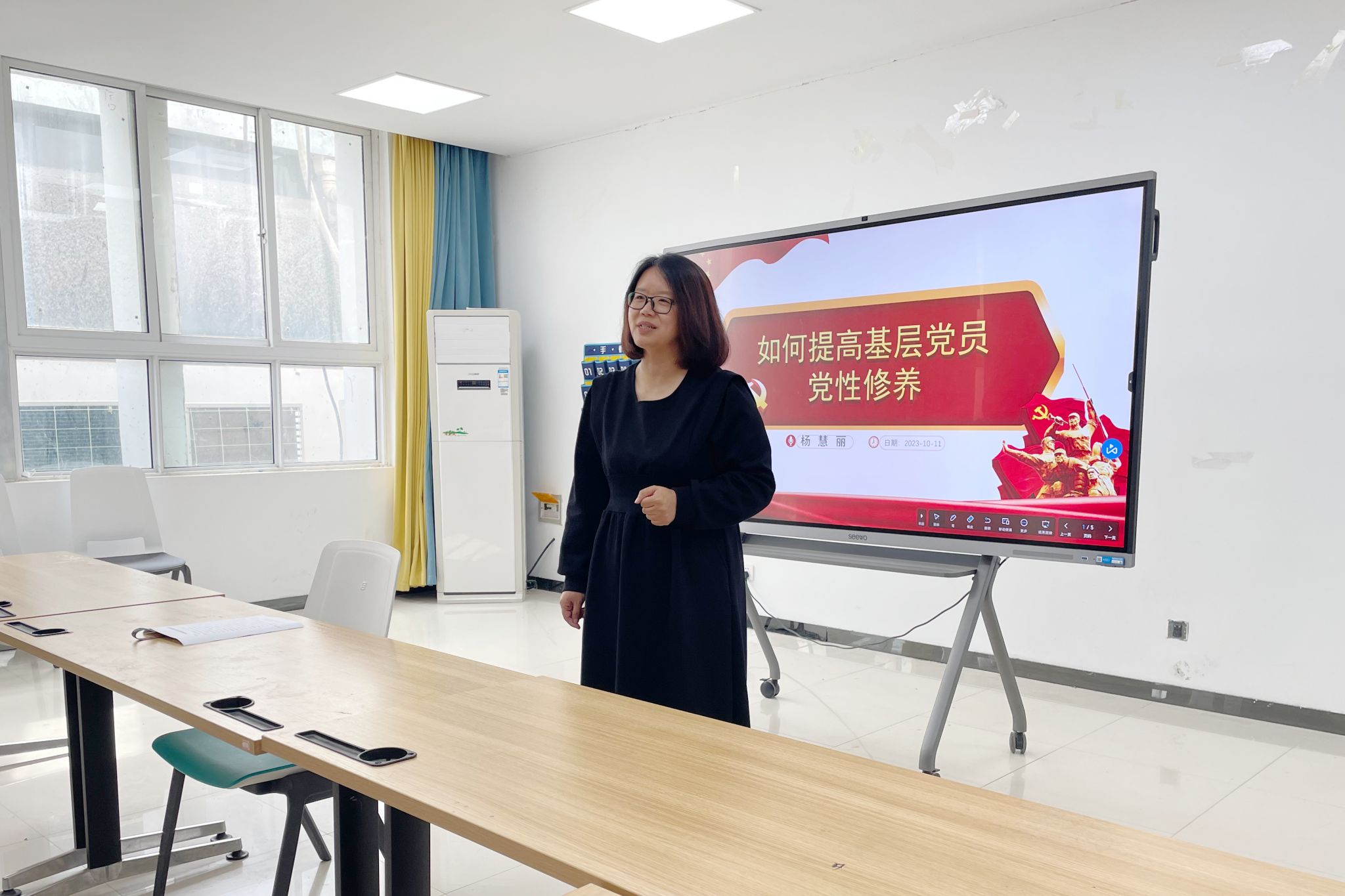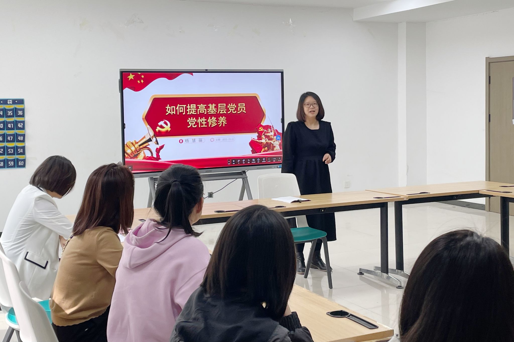 10月11日中午13时于7B102室,文化艺术学院党总支书记杨慧丽以《如何提高基层党员党性修养》为题,为全体教师党员讲授了一堂生动的主题党课。
