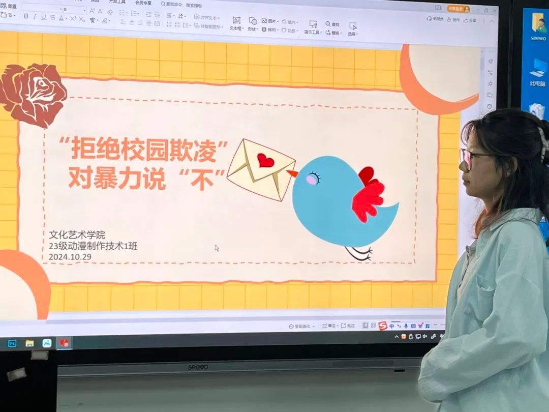 此次班会的开展,为构建和谐校园、维护学生权益奠定了坚实基础。未来,文化艺术学院将继续深化校园安全工作,努力营造一个安全、文明、和谐的校园氛围。让我们共同携手“拒绝校园欺凌,对暴力说“不”,为学生的健康成长保驾护航。