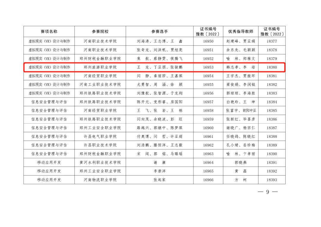 省教育厅公布河南省高等职业教育技能大赛获奖名单,