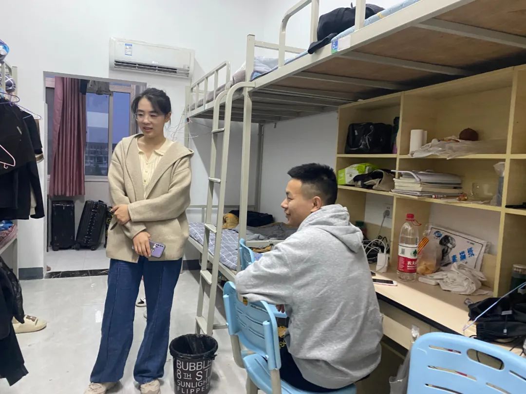 走访过程中,辅导员与学生亲切交流,询问同学们返校感受,且细心叮嘱同学们天冷加衣,注意预防感冒。