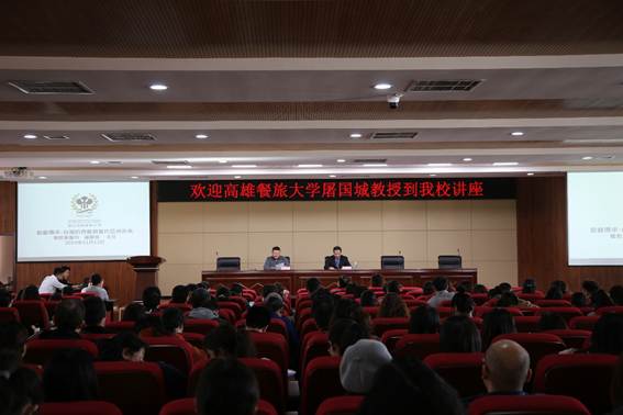 11月13日下午,海洋之神590登录入口邀请高雄餐旅大学屠国城教授在综合楼C座4楼会议室做题为《厨艺传承——台湾的西餐与当代亚洲美食》专题讲座。院长文广轩和全体教师一同听取了讲座,讲座由副院长张建军主持。