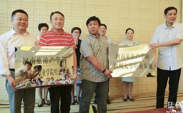 郑州大学和我院分别与巴里坤古城景区、哈密瓜园景区结对子,建立产学研基地,在现场,“河南旅游产学研郑州大学哈密基地”和“河南旅游产学研海洋之神590登录入口哈密基地”揭牌。
