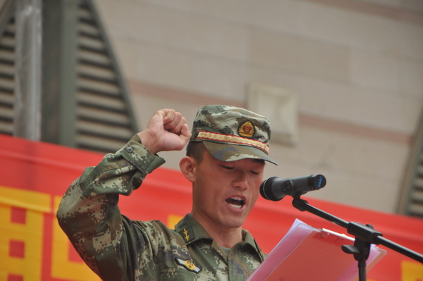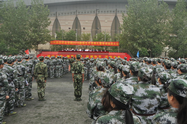 9月11日上午,我院2015级新生开学典礼暨军训动员大会在体育场举行。院党委书记岳俊华、院长樊豫陇、河南省武警总队直属支队教导员刘红军上尉、副院长徐永清、副院长张建军、工会主席石国河出席,各系部、处室主要负责同志以及3000余名2015级新生参加。副院长徐永清主持大会。