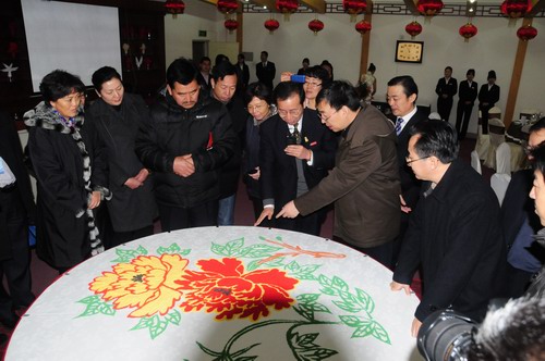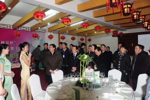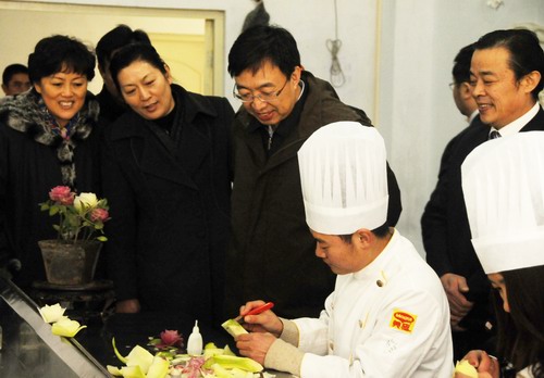 代表团参观我院国家级服务大师宋春亭设计制作的小米摆台