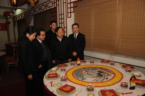 大连外国语学院党委书记柳振万在酒店管理系中餐厅实训室参观小米摆台