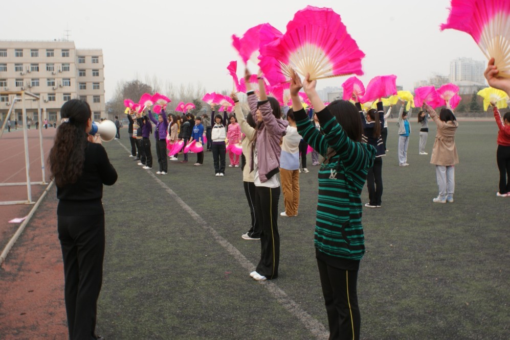 “一二三四,五六七八……”,伴随着艺术教研室编导老师一声声口令和轻快激昂的旋律,学生们舞动手中的扇子,有节奏地做着各种优美的动作。为了迎接学院即将到来的第27届田径运动会,并在运动会开幕式上有出色的表现,艺术体育部组织策划了一系列表演节目。其中,由艺术体育部艺术教研室刘笑艳、朱晨、贾书峰老师精心编排指导的大型团体操扇子舞《欢天喜地》,场面宏大,动作精美,参演学生达三百人,充分展现了学院学生积极向上的风采,。