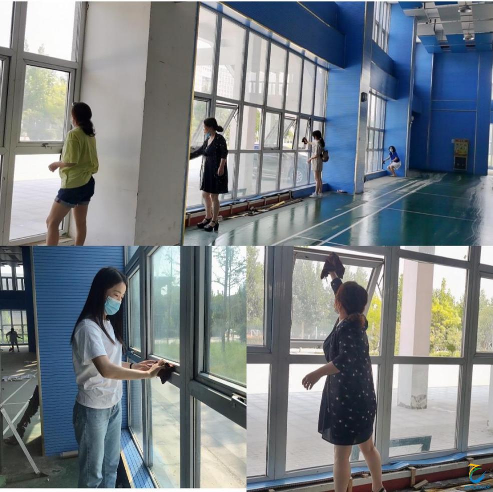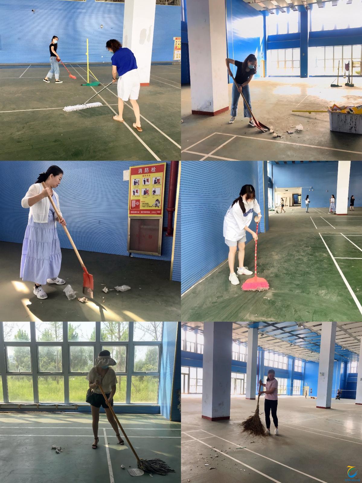 为做好开学前期的准备工作,本着“我劳动,我快乐,创造优美卫生环境就是助力防疫的心态”,8月27日,在薛月主任的带领下,体育教学部组织全体教师对体育馆和办公室进行了全方位、覆盖式、无死角的卫生大扫除。