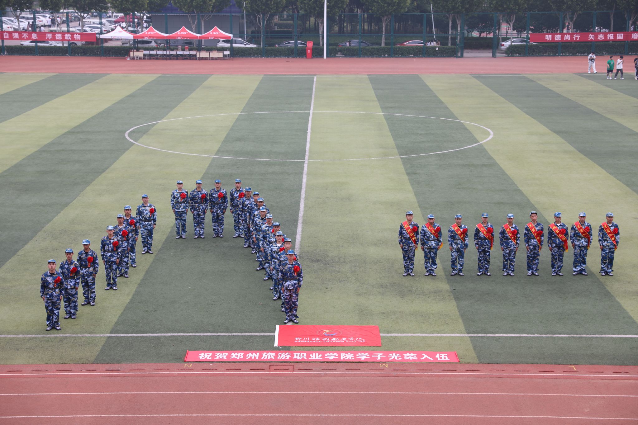 仪式上,身着军装、肩披绶带的新兵们精神抖擞、步履铿锵地走上台,在晨光的照耀下,胸前的红花显得格外威武与荣耀,在场师生纷纷送上温暖有力的祝福和鼓励。陈维老师代表学校向即将踏上新征程的新兵们和积极支持子女应征入伍的家长表示热烈的祝贺,并提出三点寄语和希望:一是在部队里要不忘初心、牢记使命,加强学习、提高素质;二是要发扬不怕苦不怕累的精神,以苦为荣、苦中求进,在艰苦的环境中磨炼自己,敢于同一切困难作斗争;三是要服从命令,听从指挥,以优良的作风、高尚的军人道德风貌,承担起军人神圣职责,为建设“听党指挥、能打胜仗、作风优良”的人民军队贡献出自己的力量。