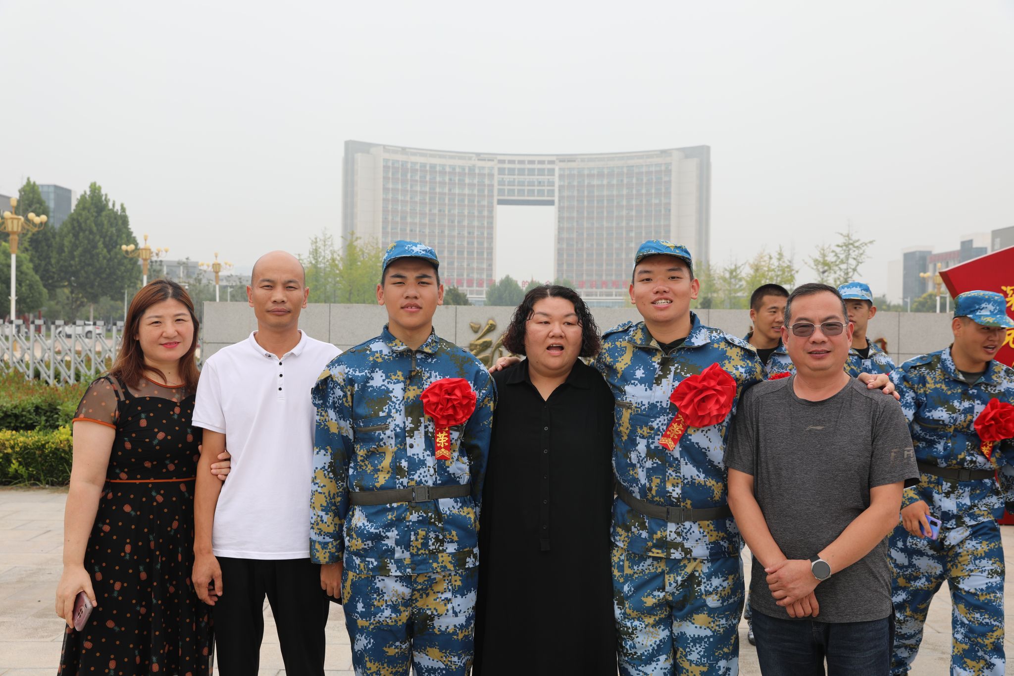 最后,各二级学院负责征兵工作的教师同新兵及家人们在学校合影留念。号角已出,征程已踏。29名新兵战士即将告别亲友,暂离母校,带着学校和家乡人民的祝福与期盼,奔赴祖国的四面八方,履行保家卫国的神圣使命。在这里再次祝愿他们,在未来做新时代四有军人,培养“铁一般信仰、铁一般信念、铁一般纪律、铁一般担当”!