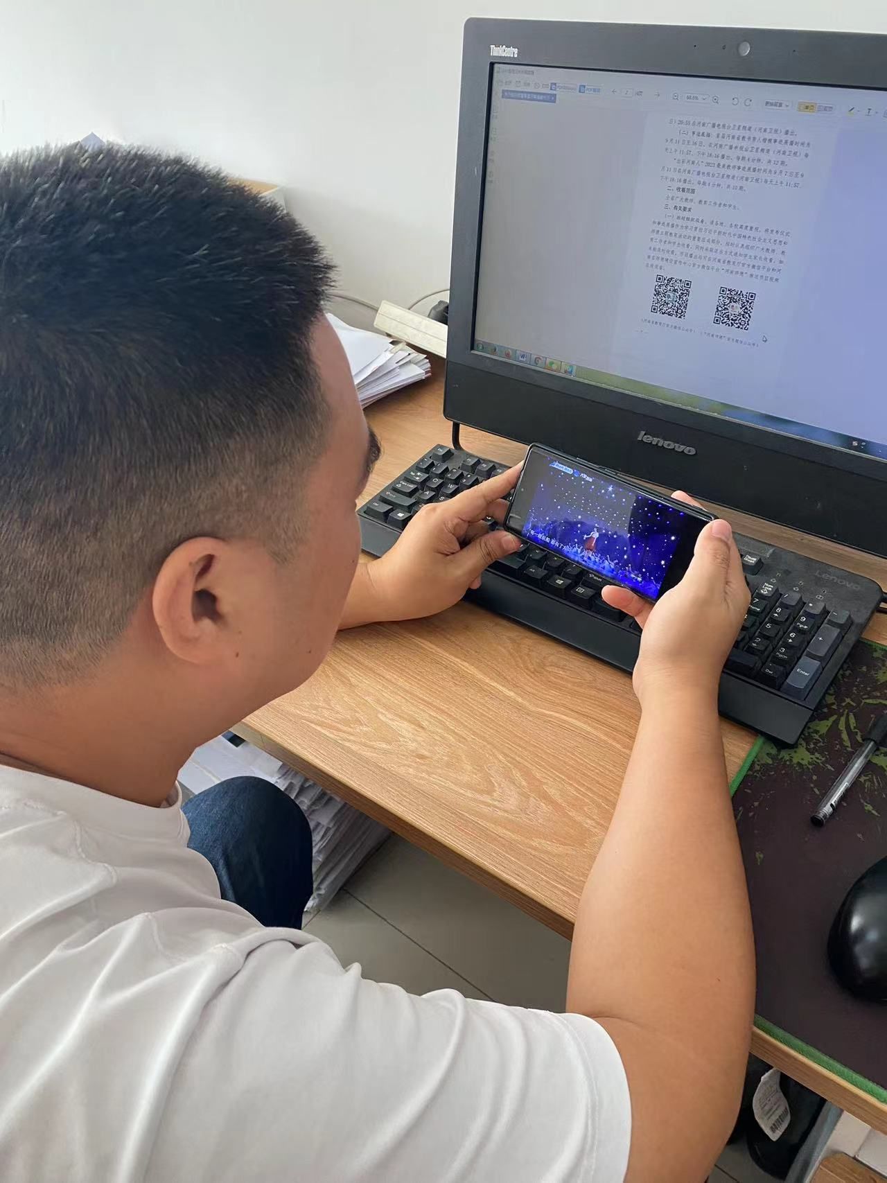 首先,大家围坐在一起观看视频,并记录感想和教书育人楷模相关事迹。